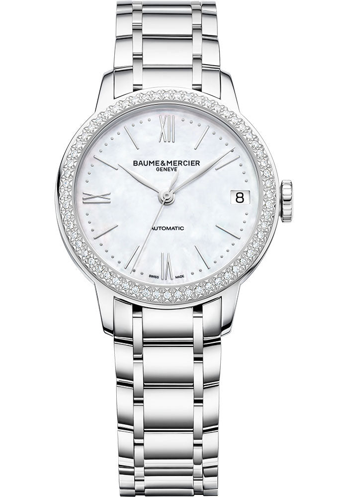 Baume & Mercier Classima Automatic Watch - Date - Diamond-Set - 31 mm Steel Case - White Mother-Of-Pearl Dial - Steel Bracelet