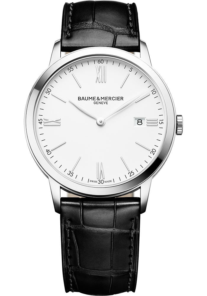 Baume & Mercier Classima Quartz Watch - Date Display - 40 mm Steel Case - White Dial - Black Calfskin Strap