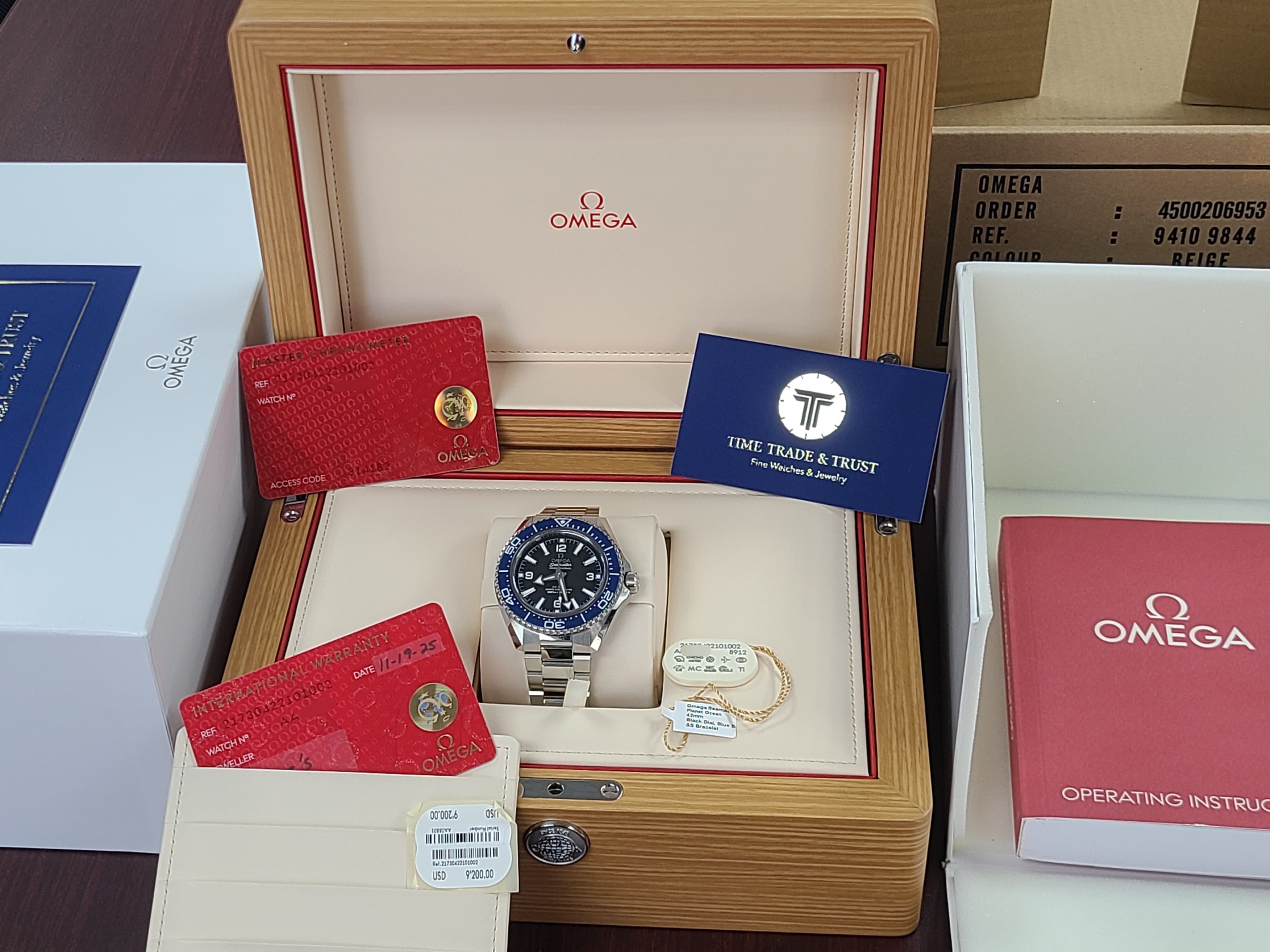 Omega Seamaster Planet Ocean 600M BATMAN Blue Ceramic Bezel Titanium SeaHorse Back Black Matte Dial Master Co-axial CAL 8912 Complete Full Set + White Tag