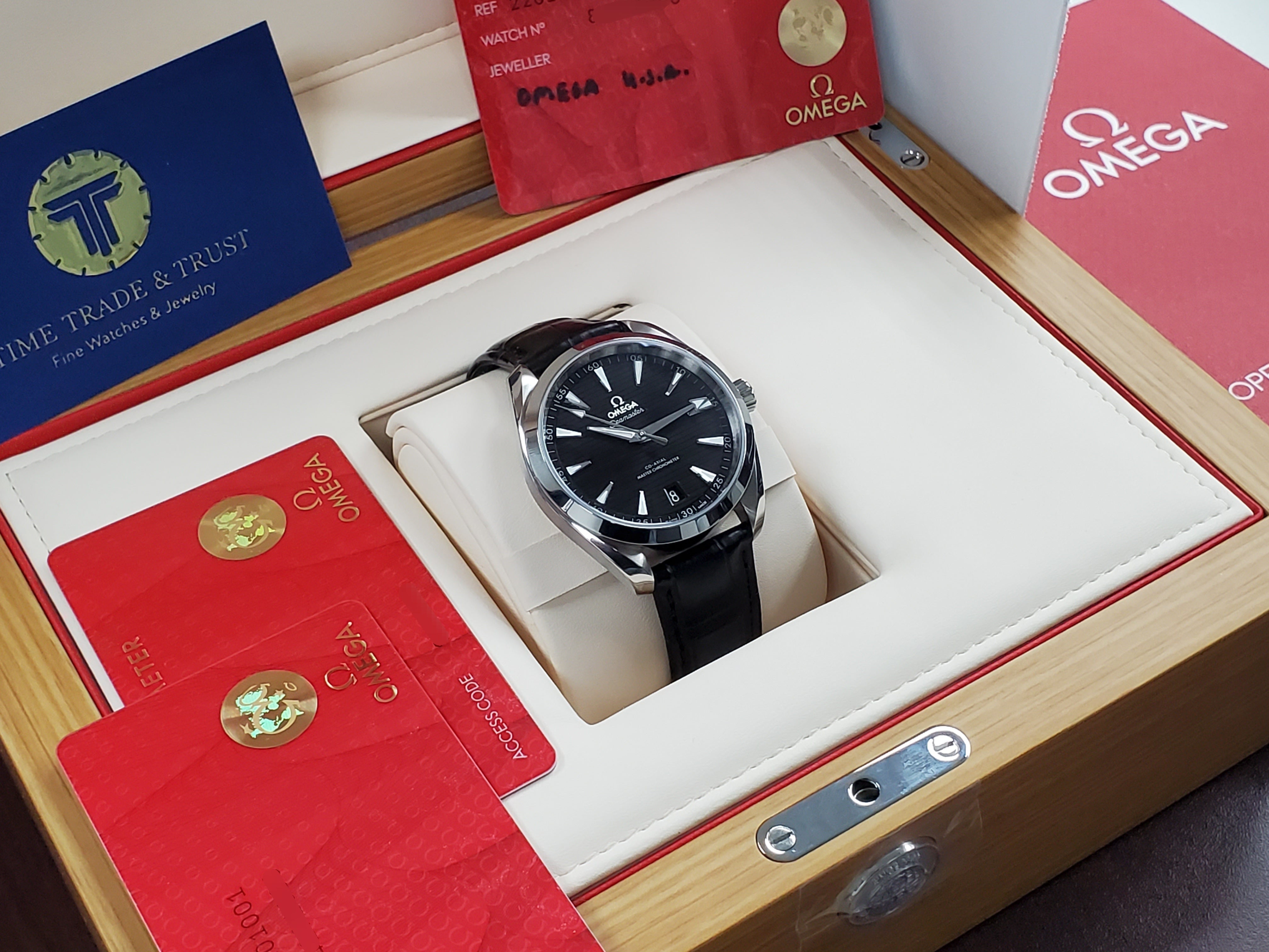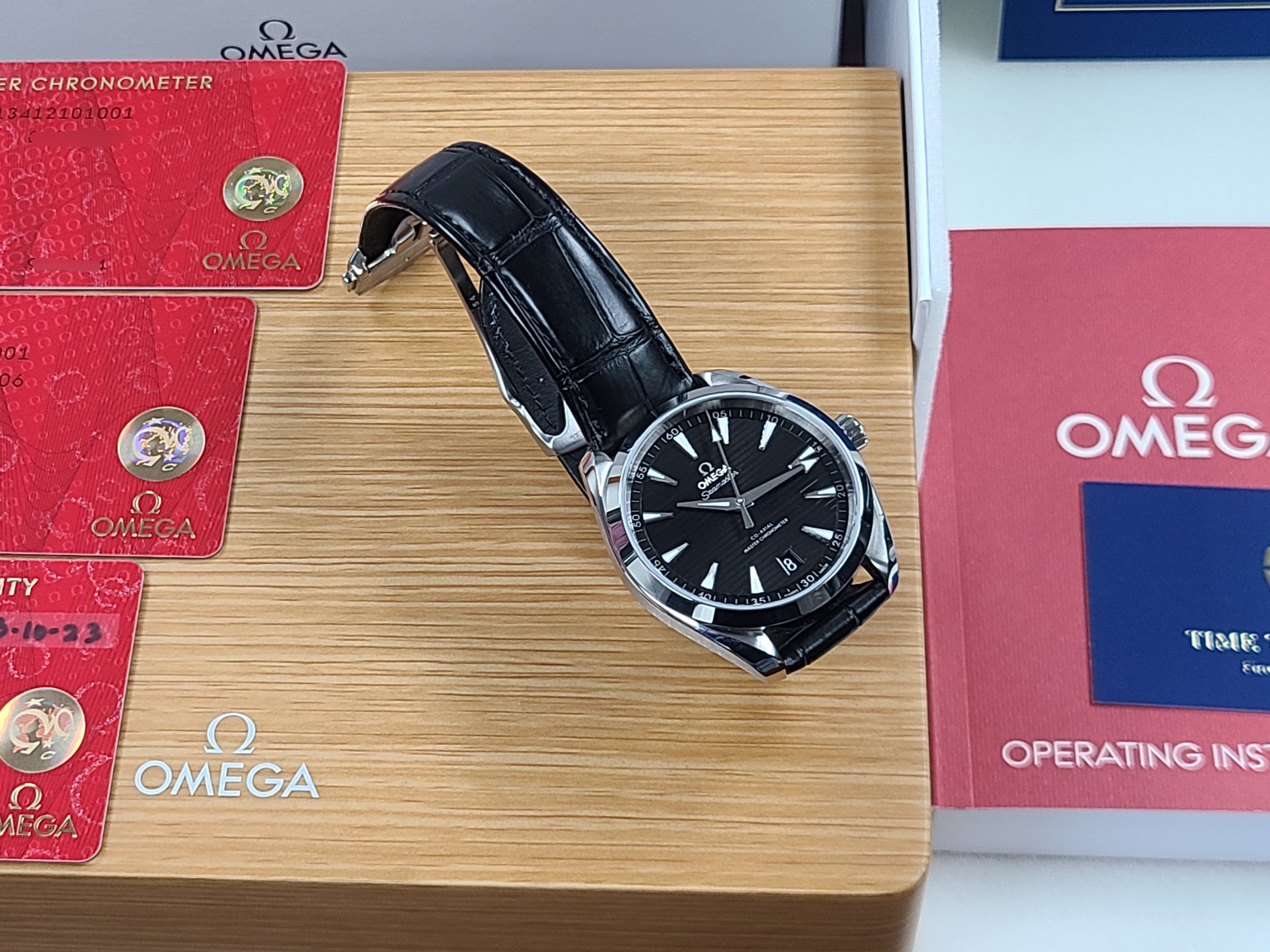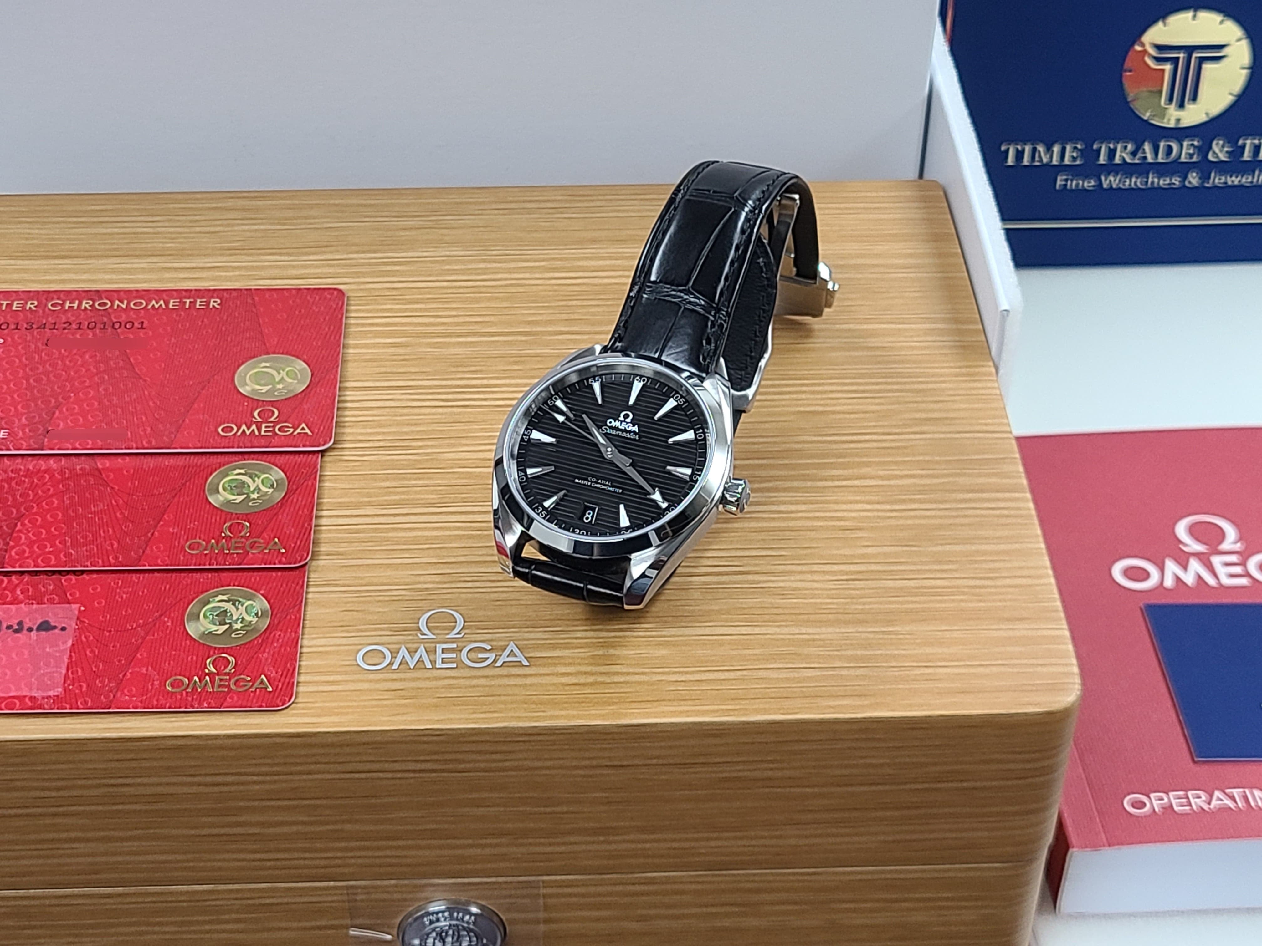 Omega Seamaster Aqua Terra 41 Master Chronometer Tapestri Dial Exhibition Display Co-Axial 8900 Black-on-Black Alligator MINT Full Set MSRP 6200