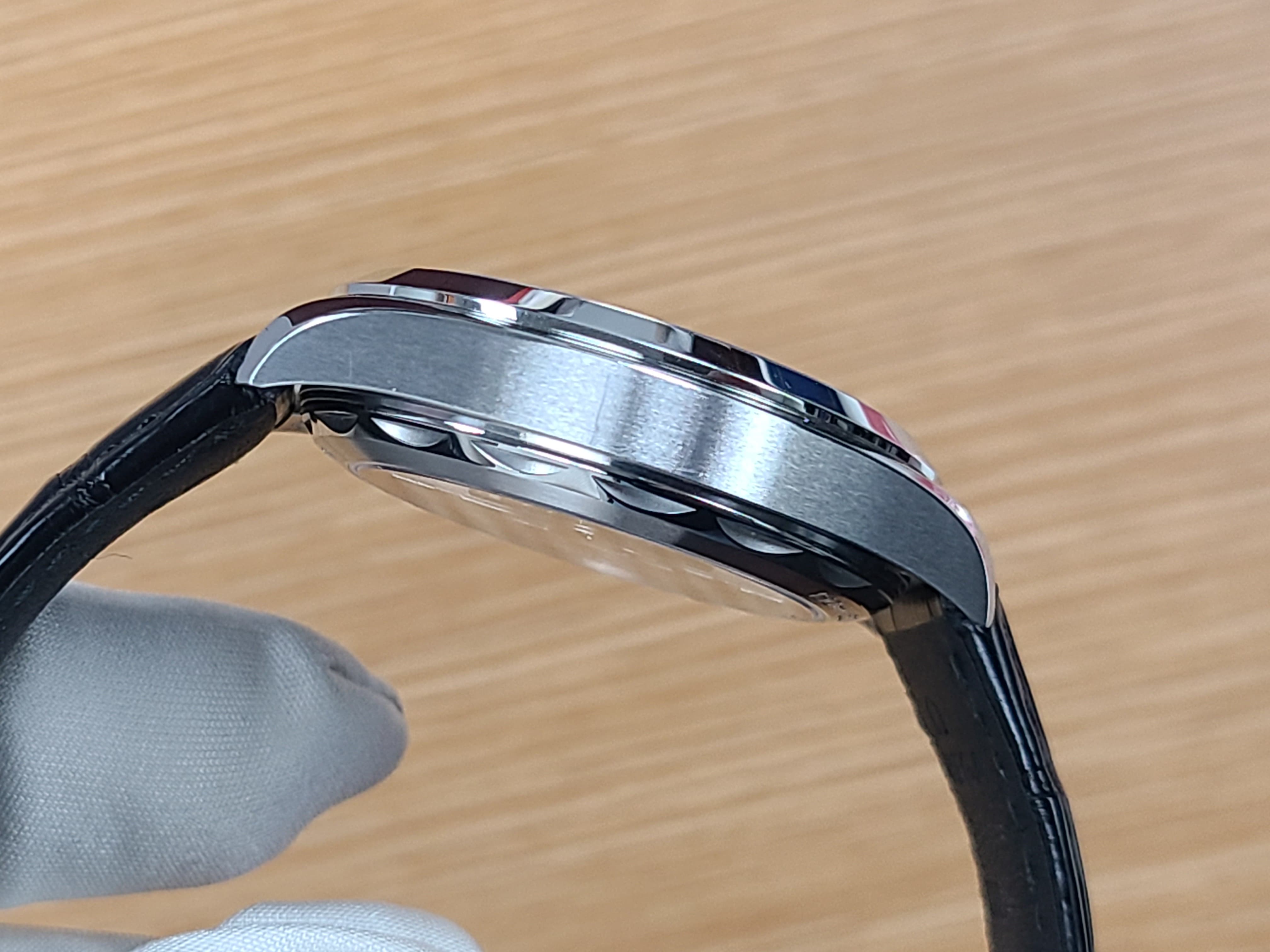 - CASE 41mm: Constructed in solid stainless steel case, bracelet is alligator leather with deployment clasp. Large size band upto 9 inch wrist.