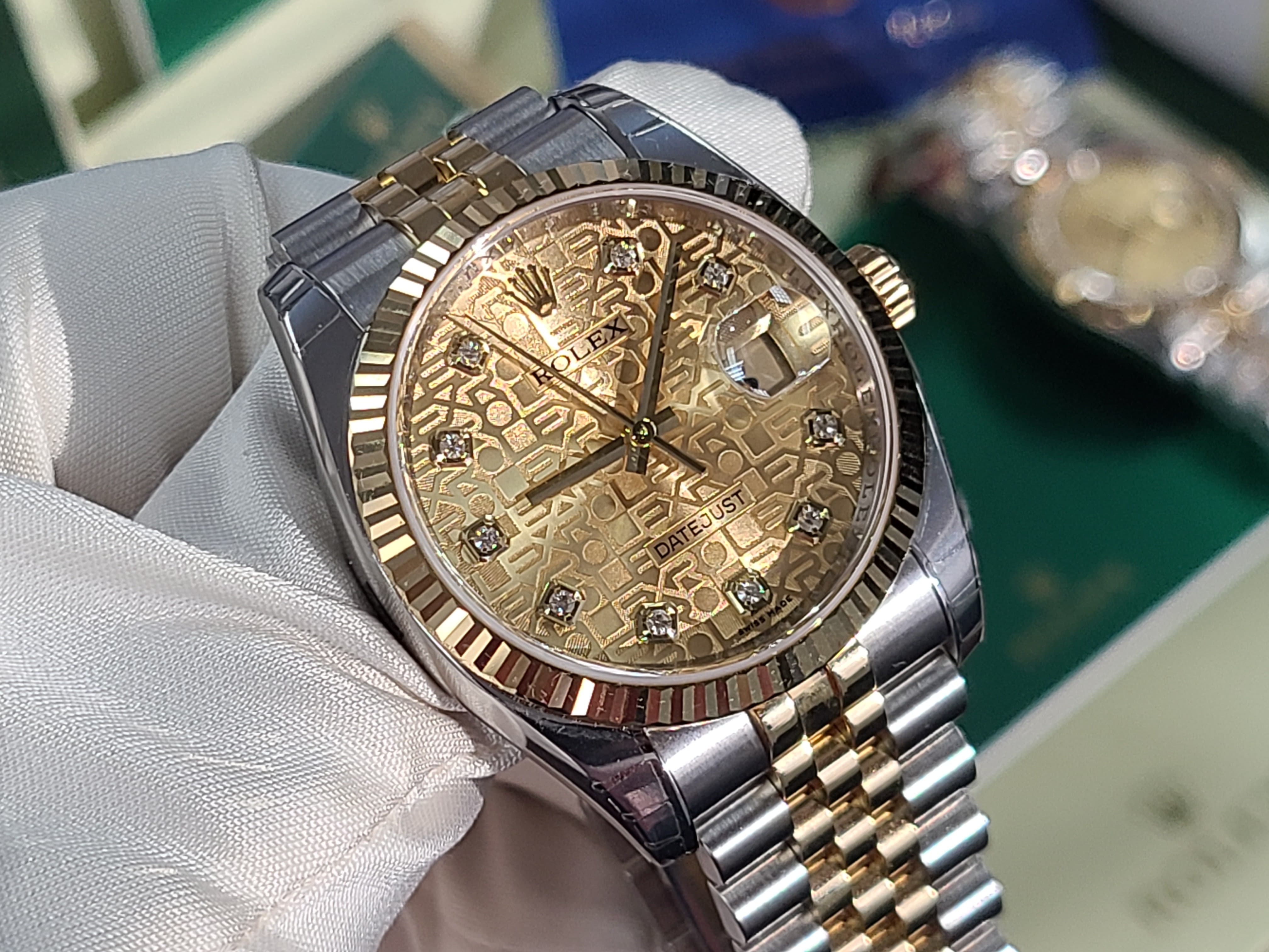 Rolex Datejust 36 ANNIVERSARY Diamond Dial Fluted Bezel Jubilee President Hidden Clasp 18k Gold NOS Full Set Unworn w/STICKERS 116233 Better Than 2026 Model