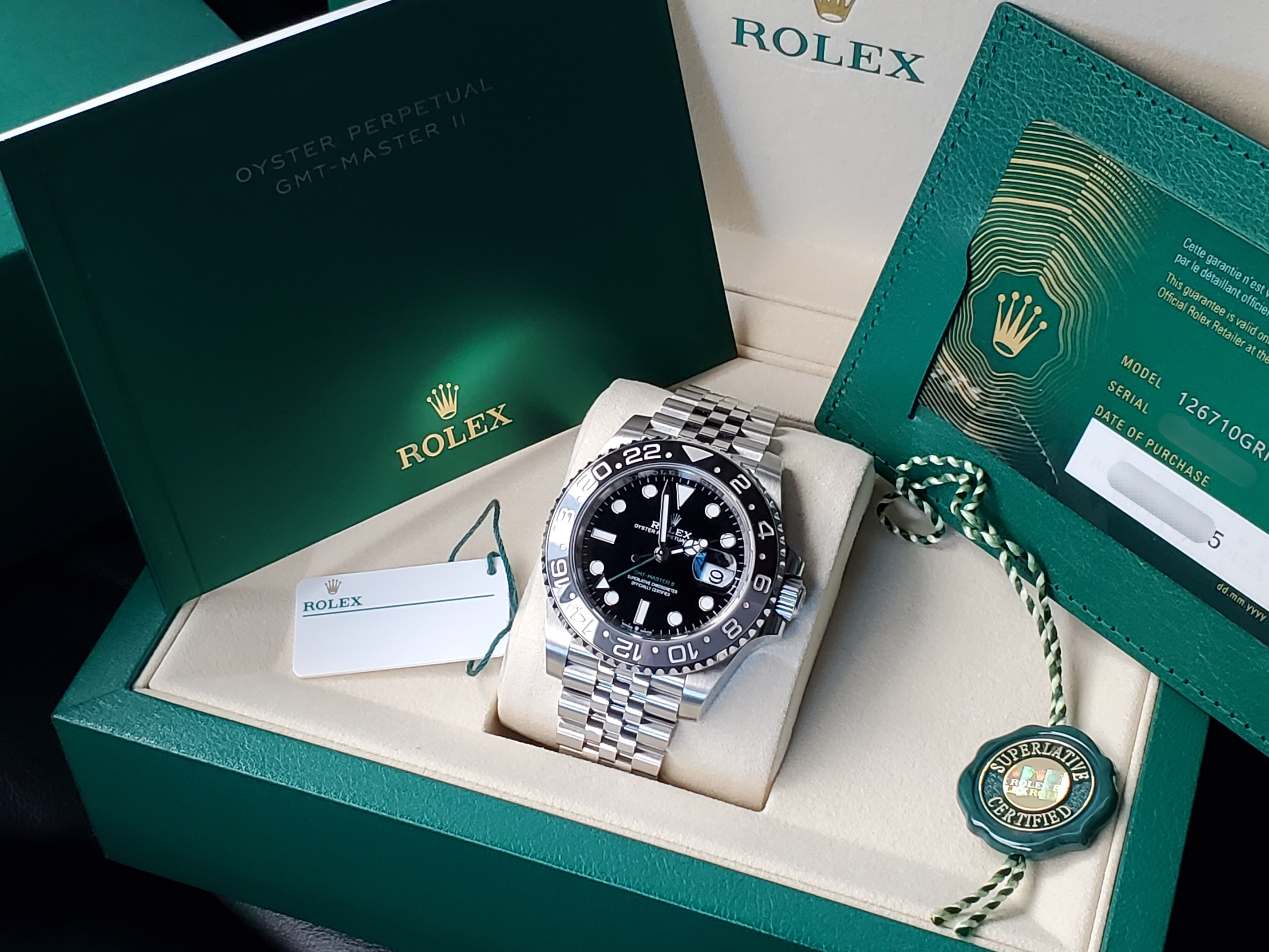 Rolex GMT-Master II 126710GRNR Jubilee Band Grey/Black Bezel BRUCE WAYNE White Tag 2025 Green Box Full Set