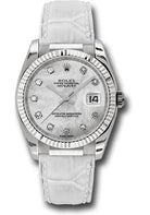 Rolex White Gold Datejust 36 Watch - Fluted Bezel - Mother-Of-Pearl Diamond Dial - Leather - 116139 mdw