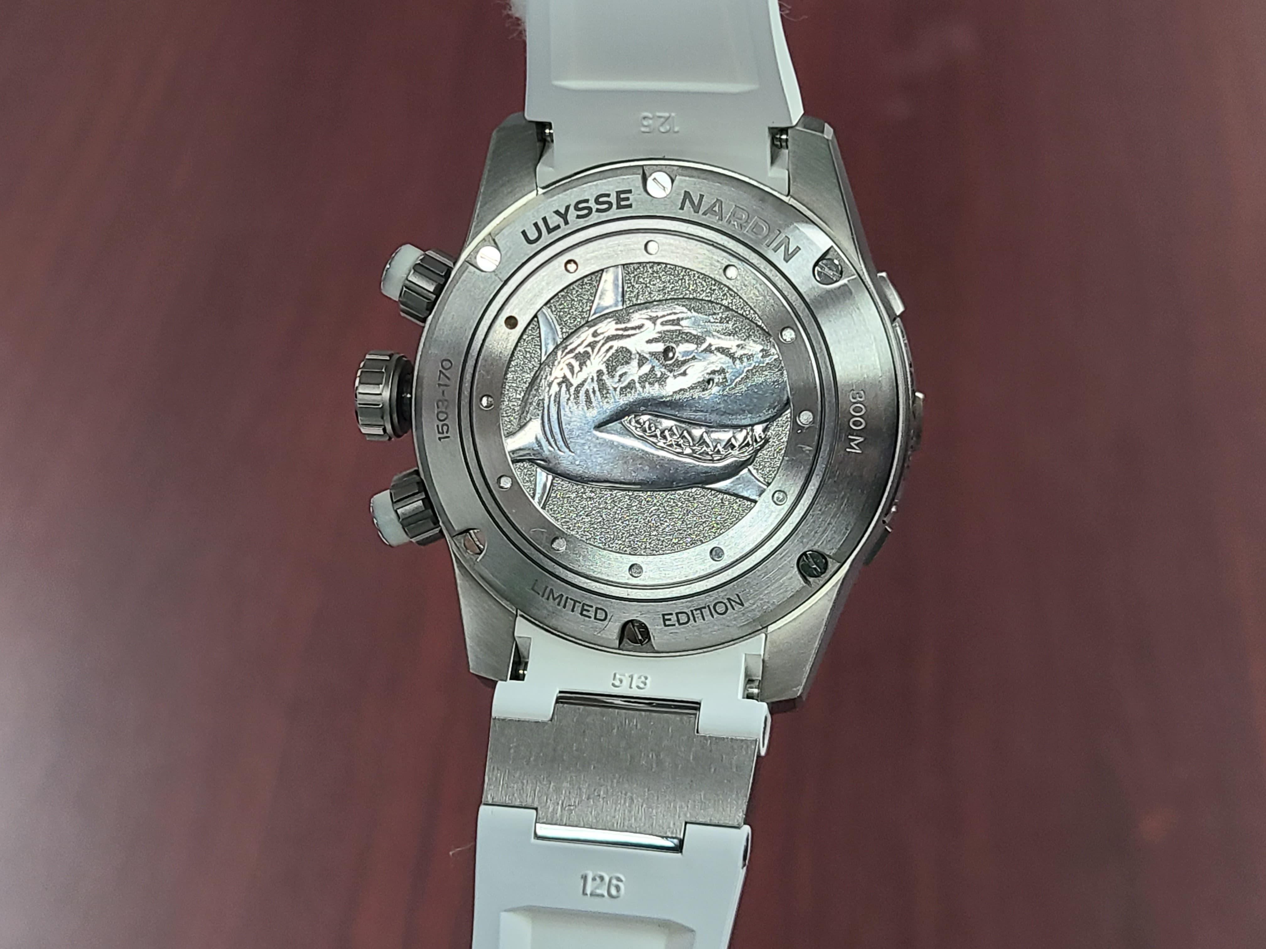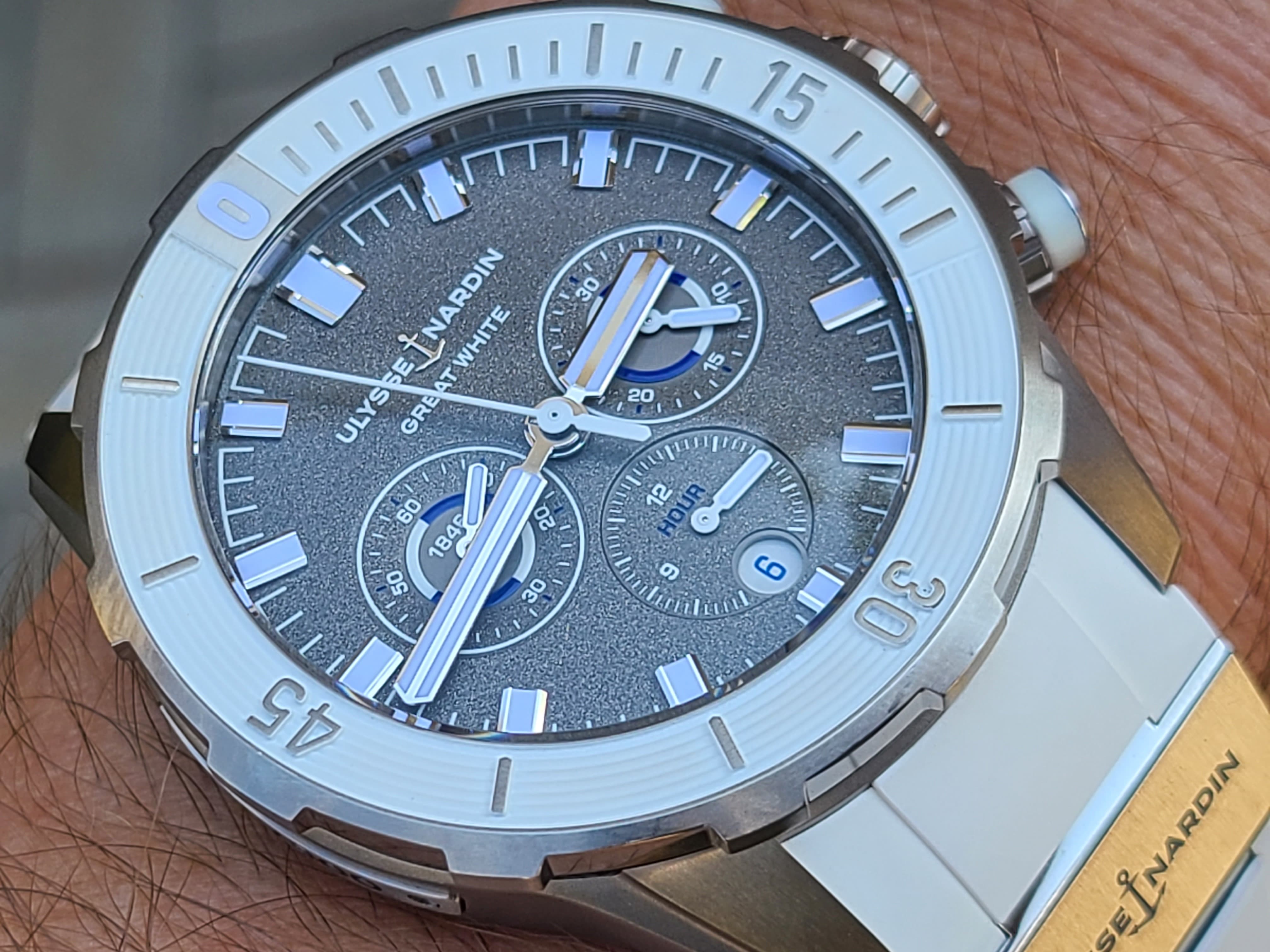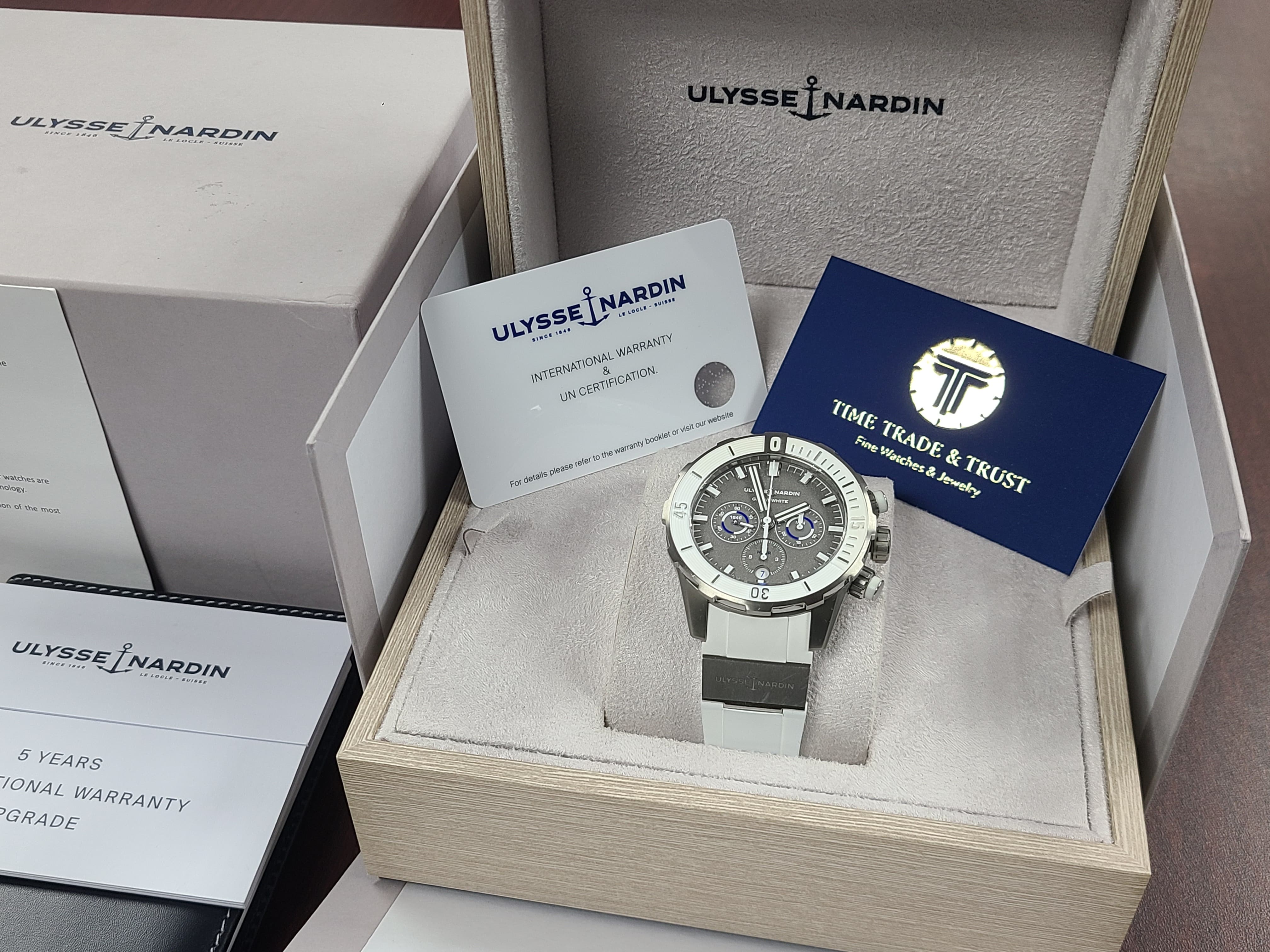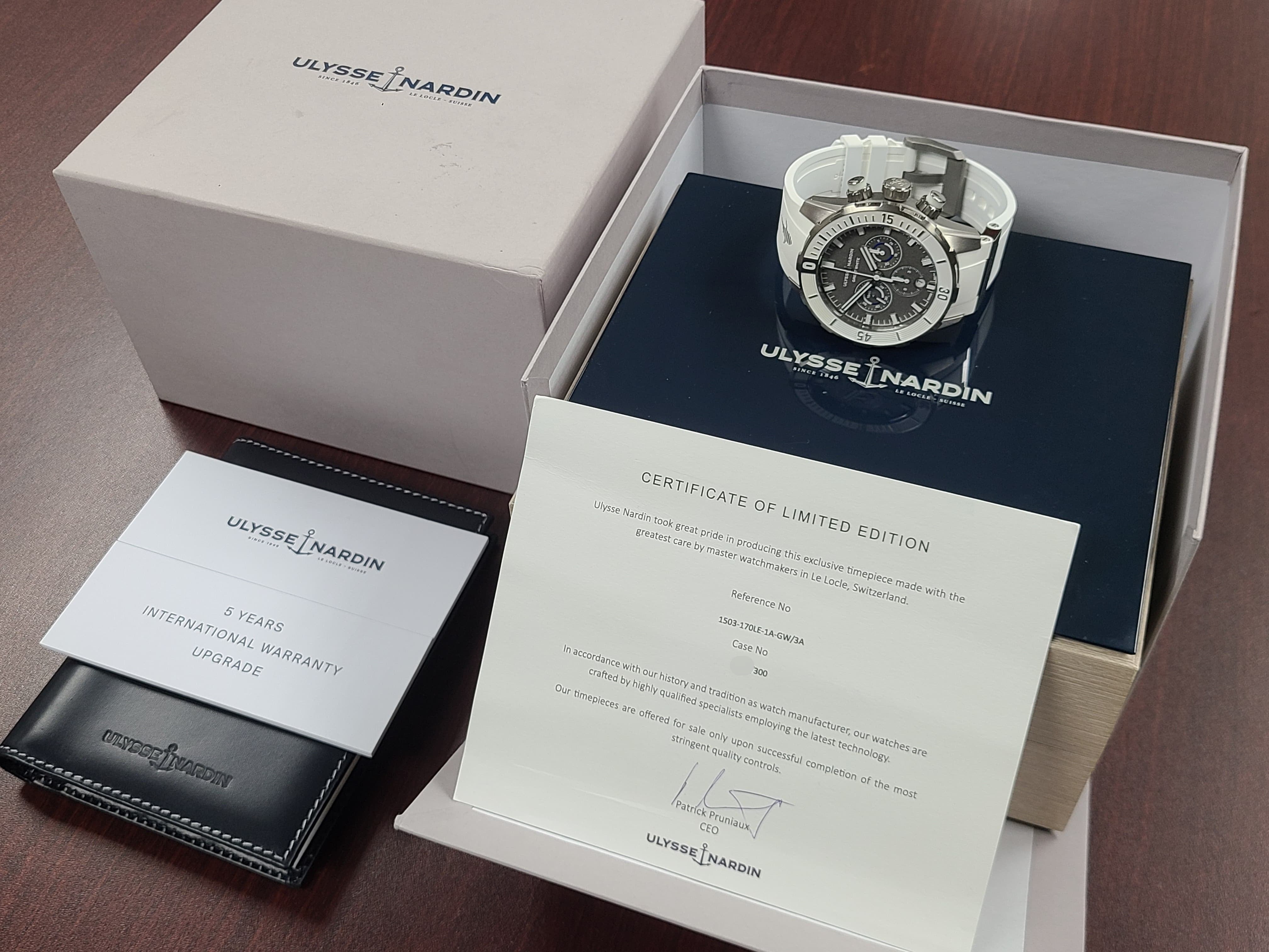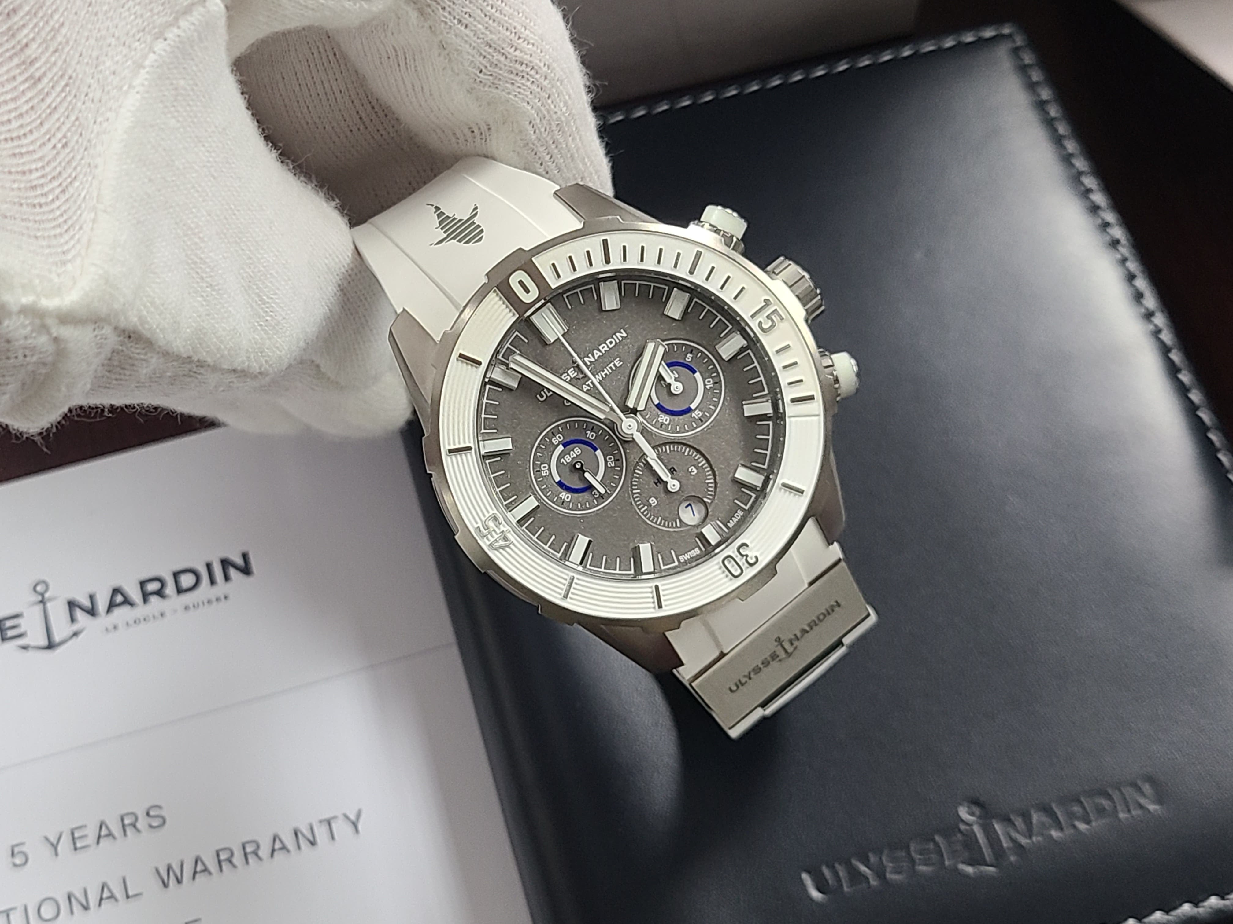 Ulysse Nardin Diver Chronograph Great White Shark Theme Colors Grey Titanium Sandblast Dial Rubber Strap Full Set Limited Edition 300 Pieces Only Certificate