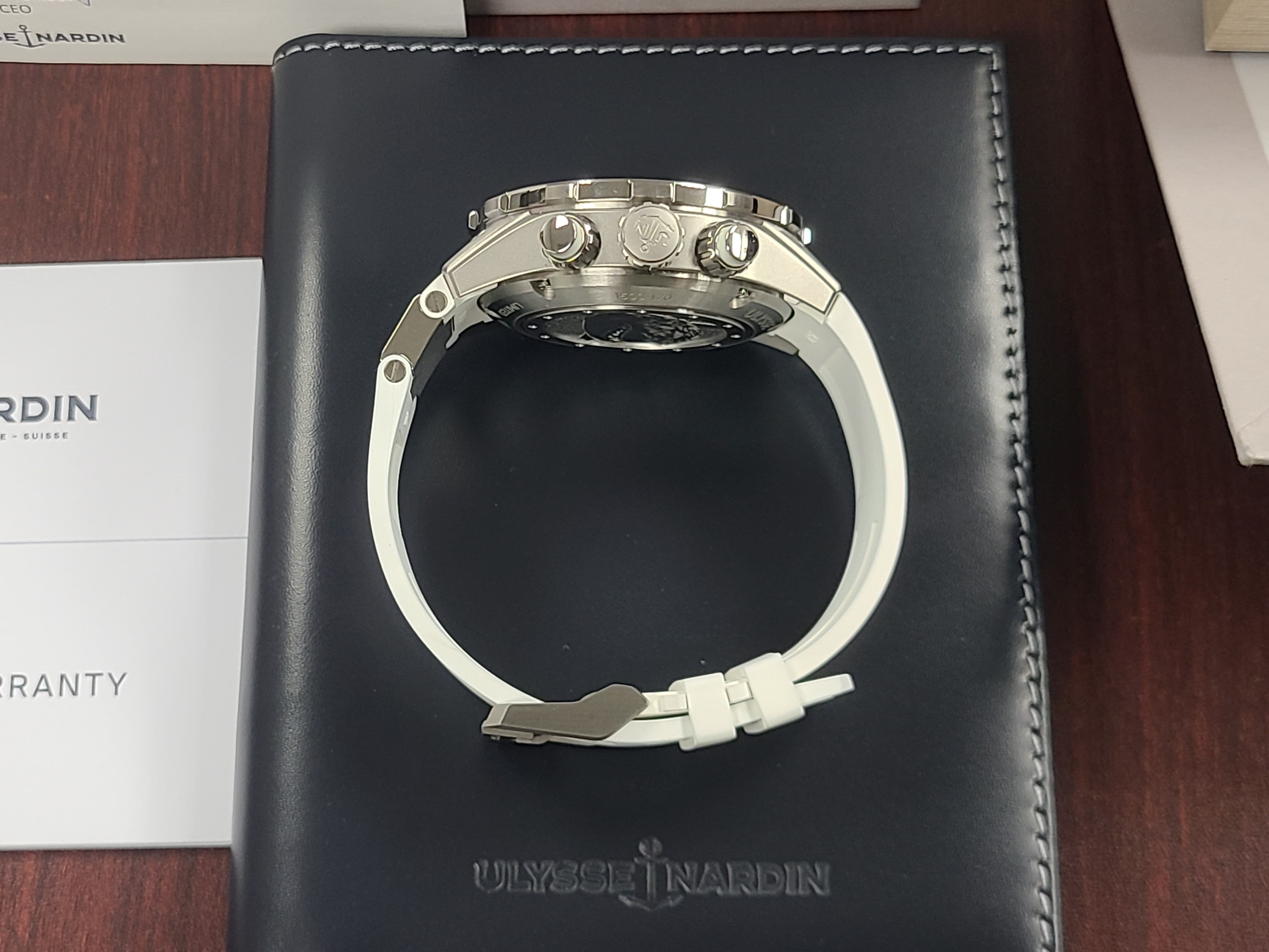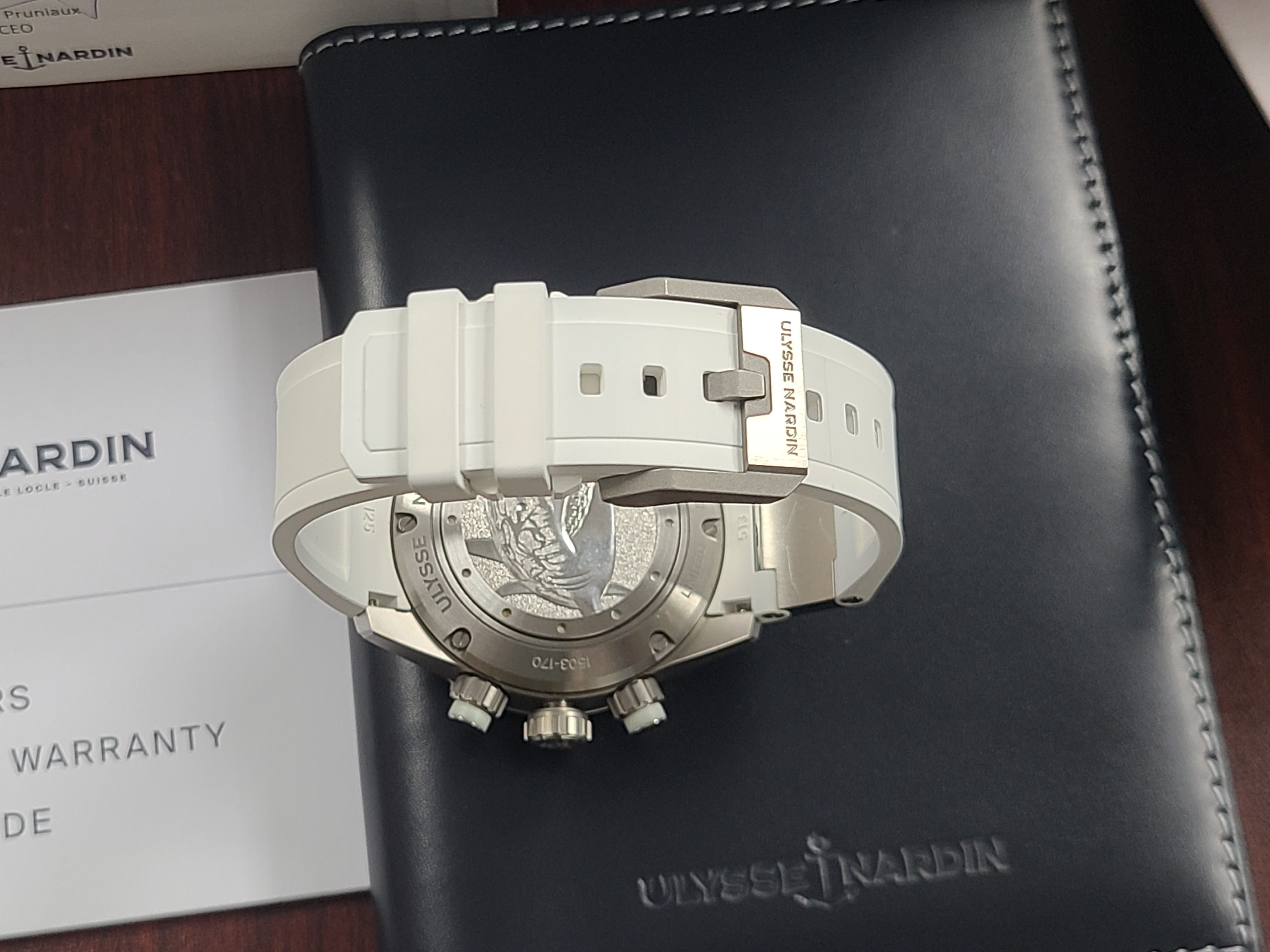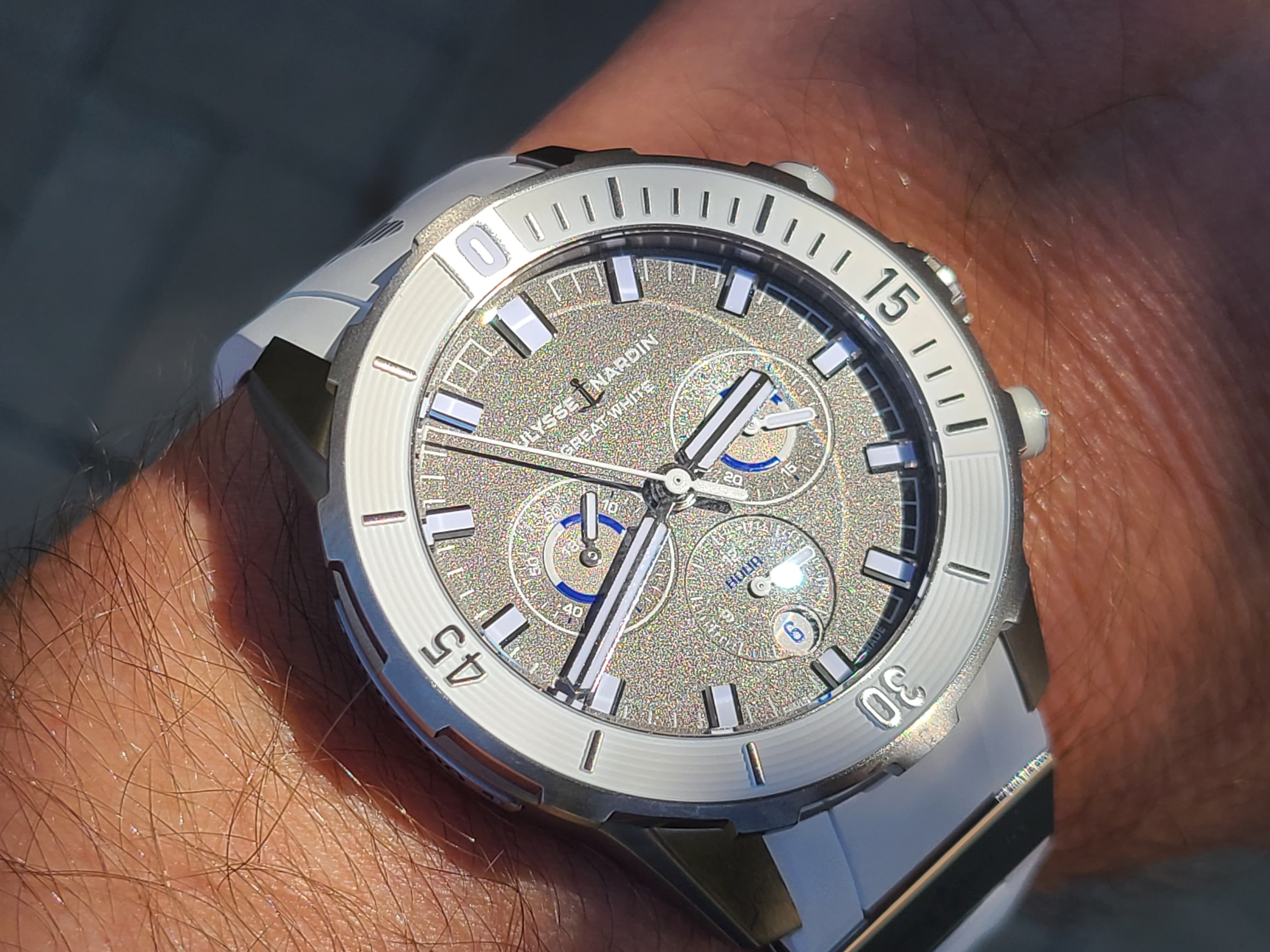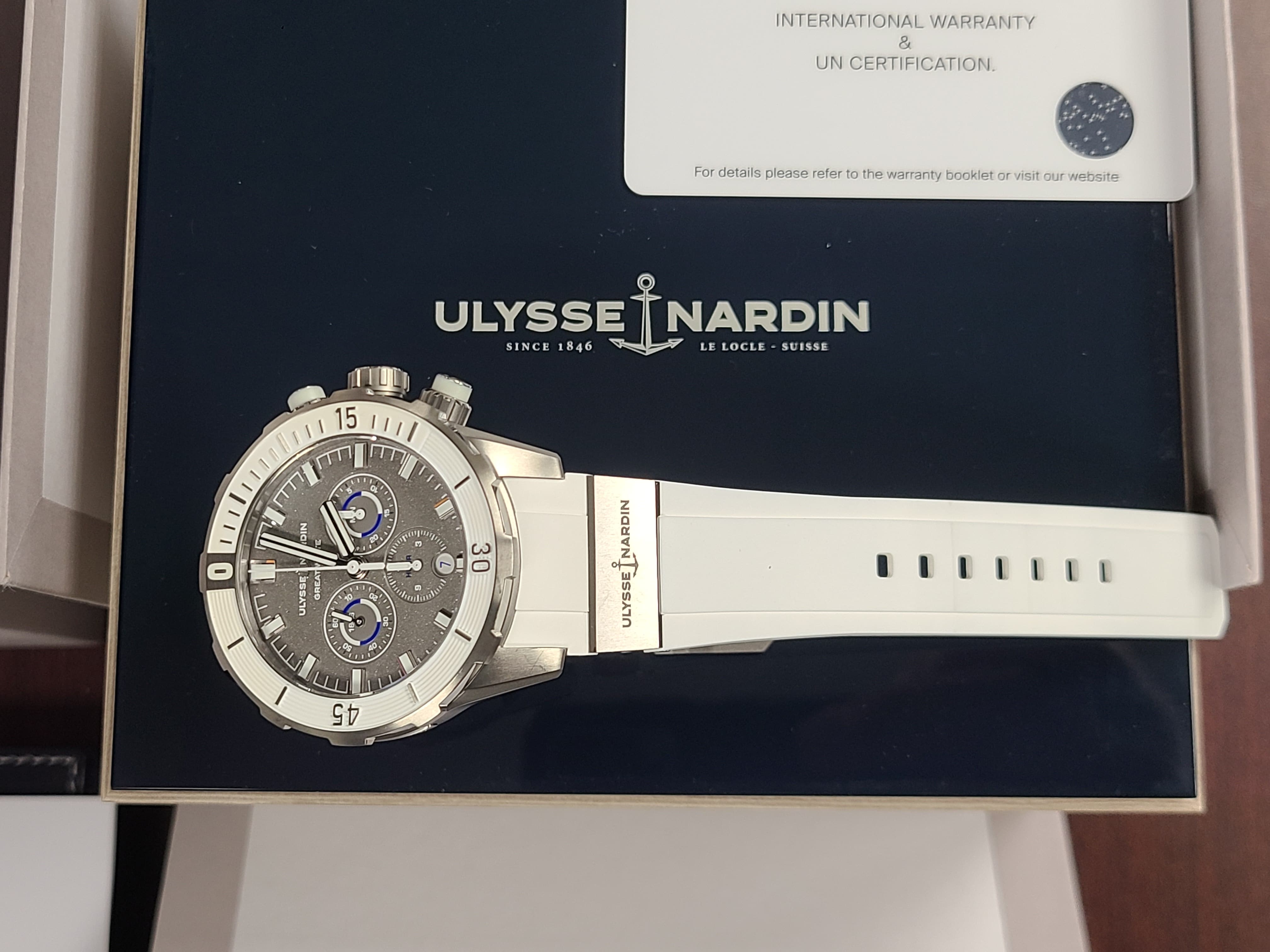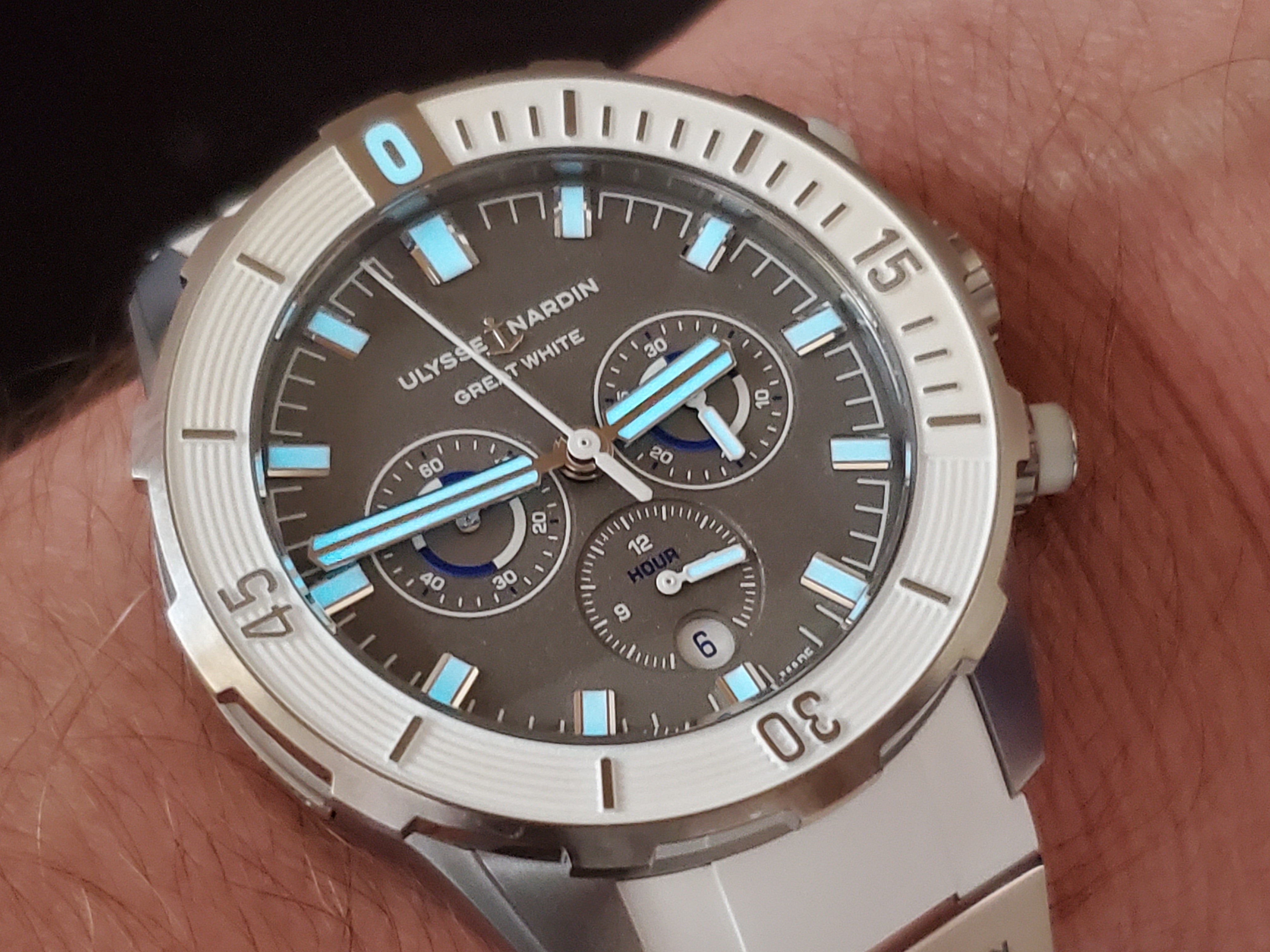 Ulysse Nardin Diver Chronograph Great White Shark Theme Colors Grey Titanium Sandblast Dial Rubber Strap Full Set Limited Edition 300 Pieces Only Certificate