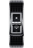 38.1 x 21.5 mm steel case, 7.8 mm thick, bezel set with 52 brilliant-cut diamonds (~0.58 carat), black lacquered dial, high precision quartz movement, steel and black highly-resistant ceramic bracelet. Water resistant to 30 m.