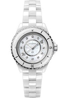 Chanel J12 Quartz Watch - 33mm White Ceramic And Steel Case - White Mother Of Pearl Diamond Dial - White Ceramic Bracelet - H5704