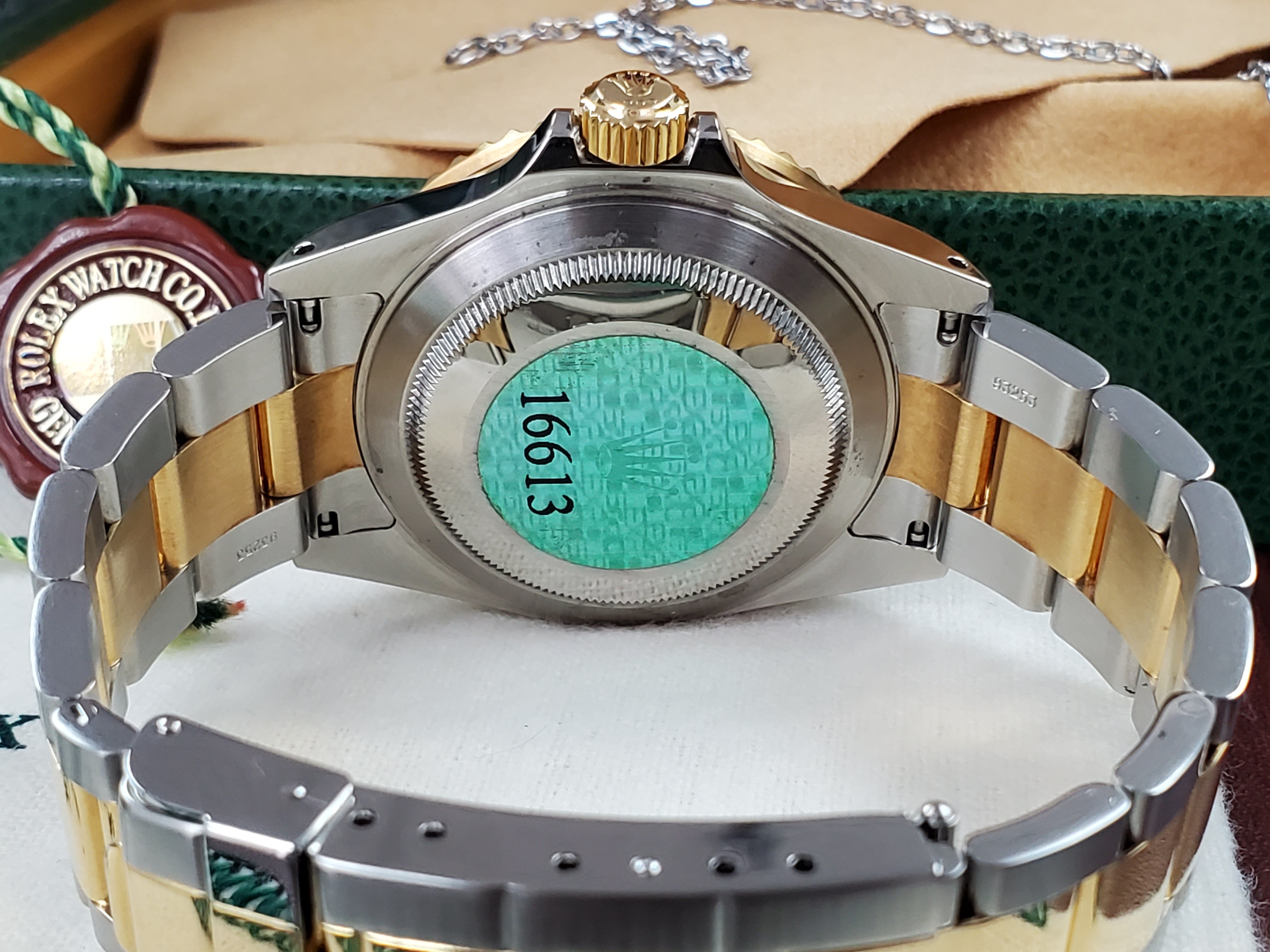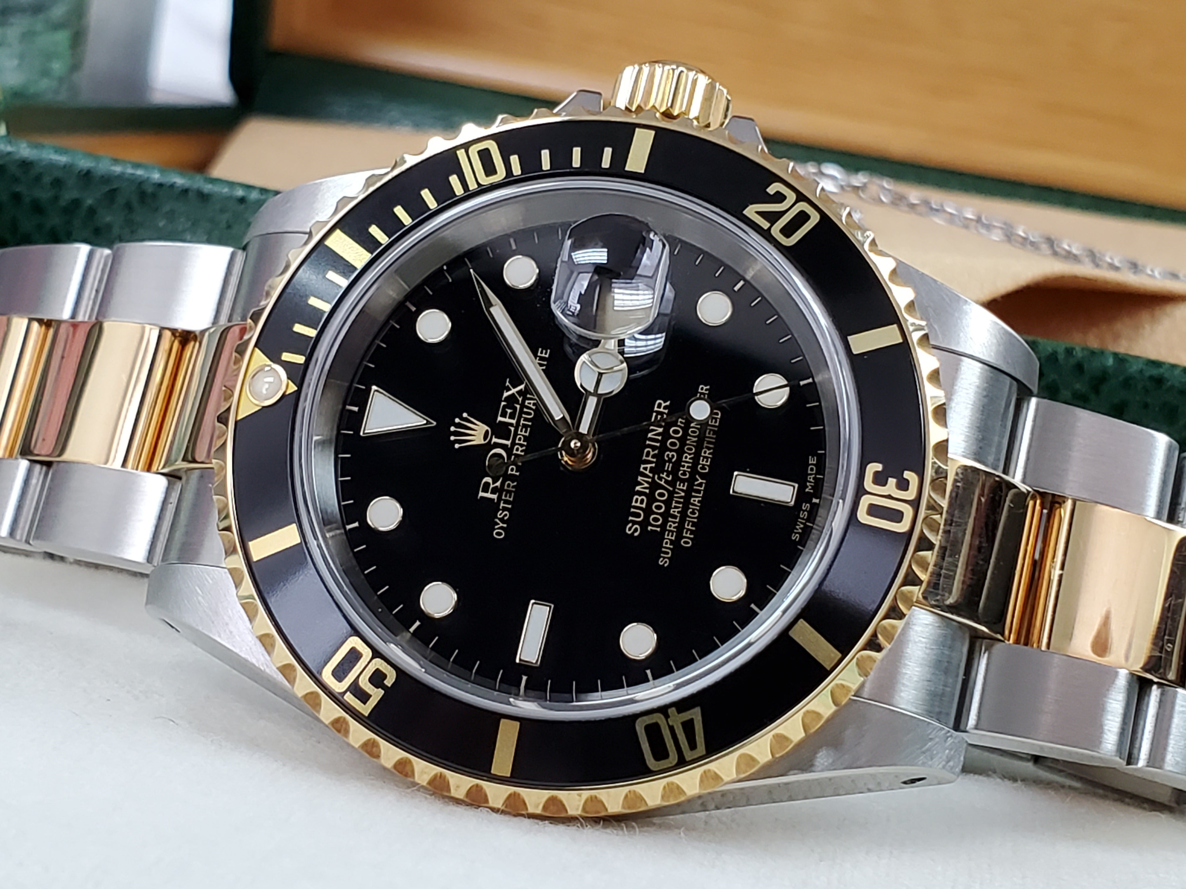 2002 ROLEX SUBMARINER Two Tone 18k Gold Silver 16613 Black - FULL SET NOS
