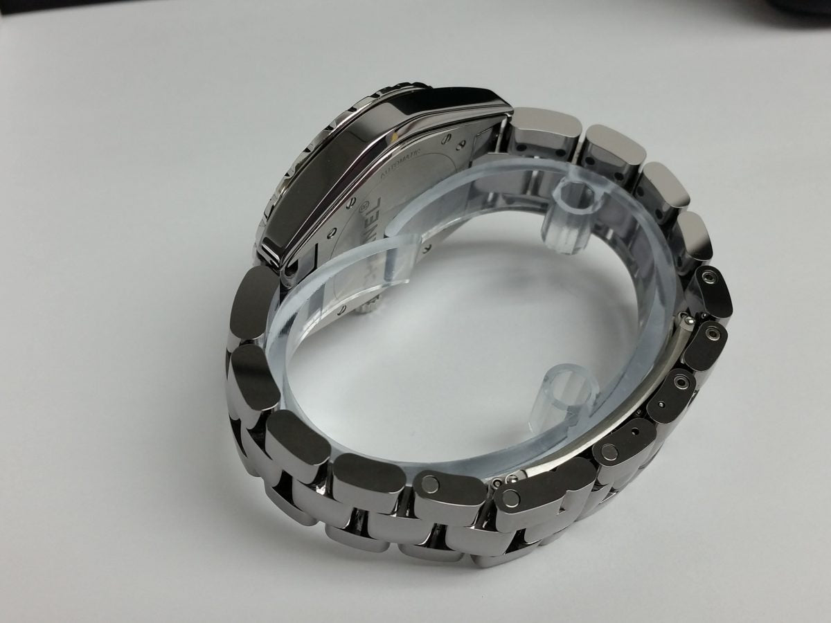 Scratch resistant sapphire crystal. Solid case back. Case diameter: 38 mm. Round case shape. Triple folding buckle clasp. Water resistant at 50 meters / 165 feet. Functions: hour, minute, second. Additional Info: 42 hour power reserve. Watch label: Swiss Made. Chanel J12 Chromatic