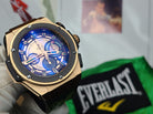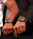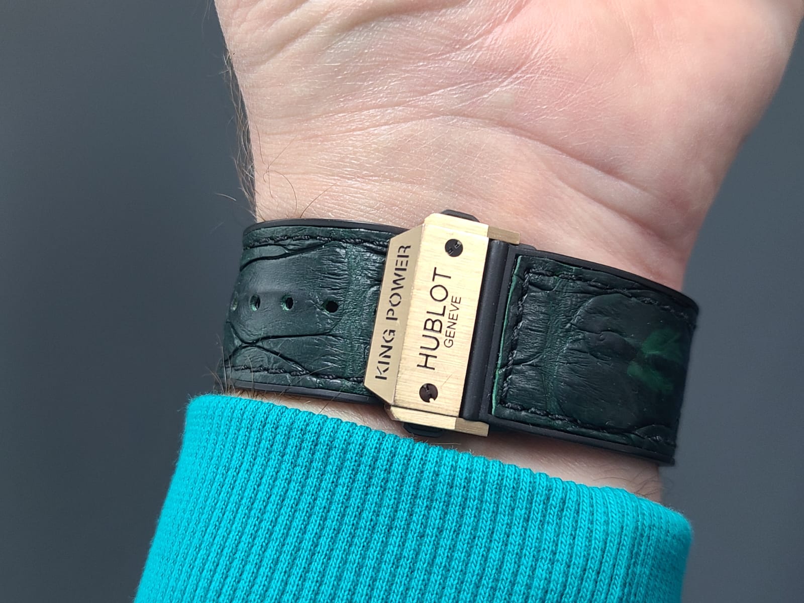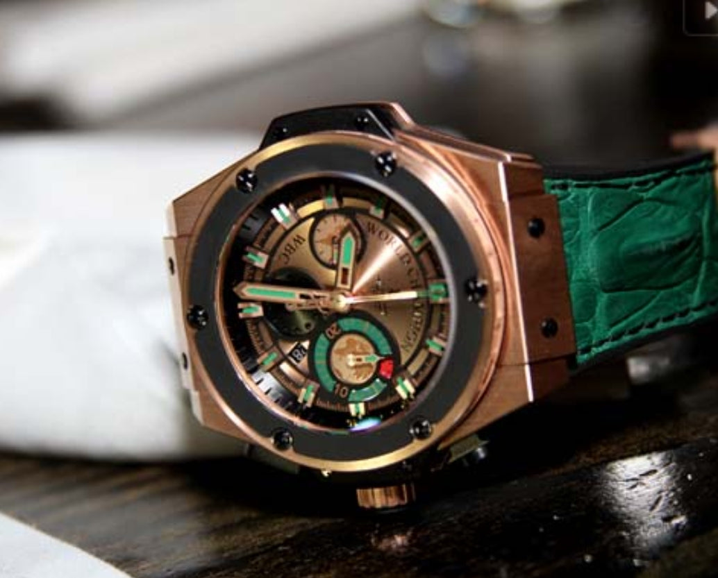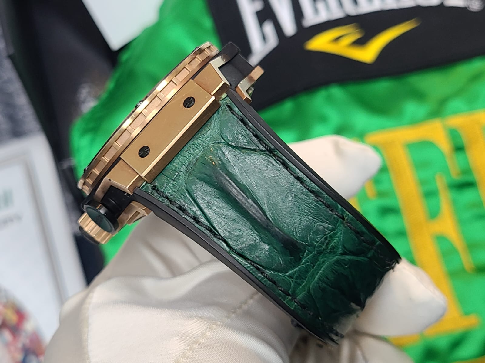 DIAL: Gilt dial, baton markers, green lumes. Green and gold tones are meant to match the WBC belt that is given to the best fighters.