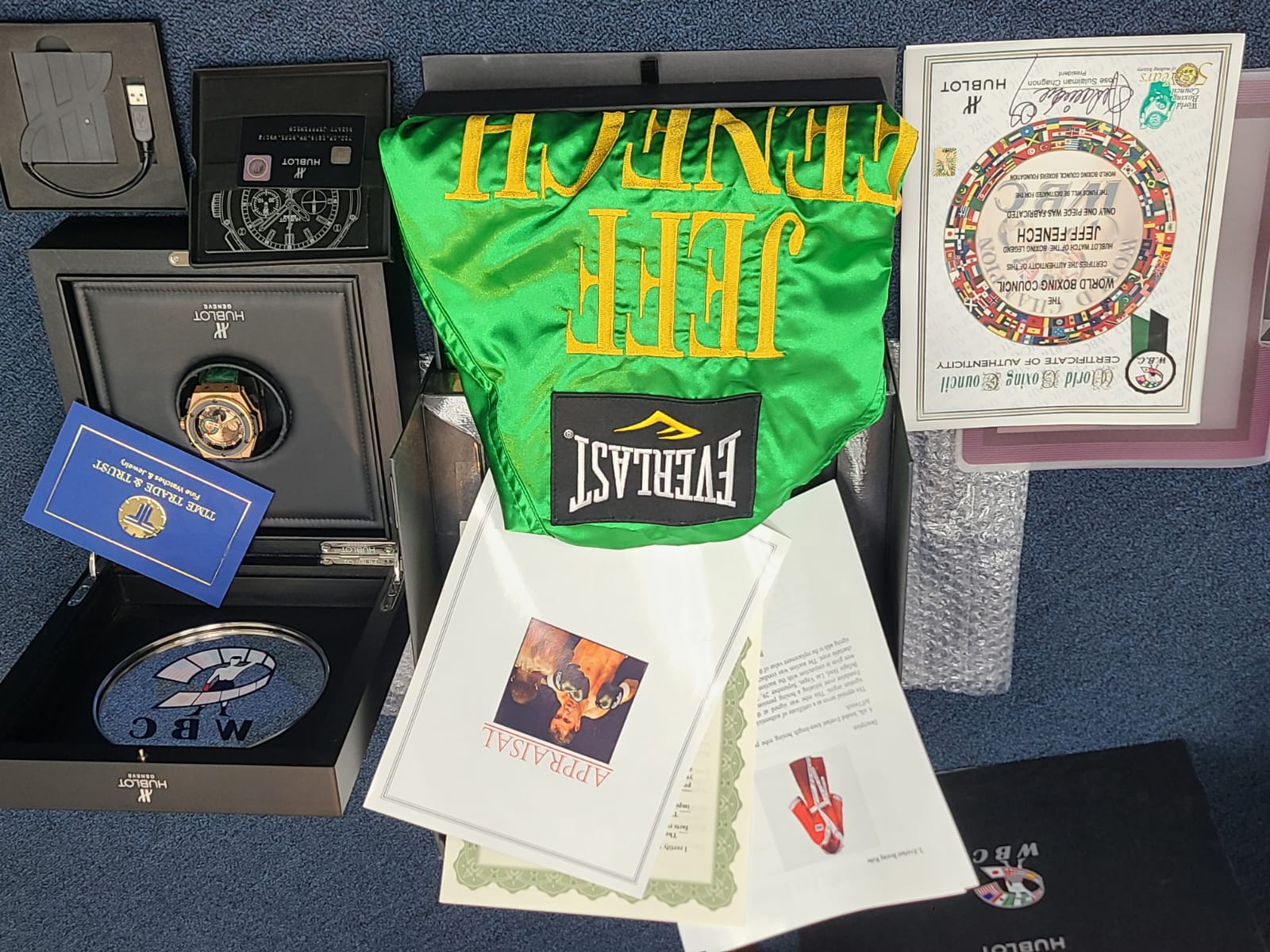 special jumbo case and trivia includes certification, literature, even the actual boxing robe.