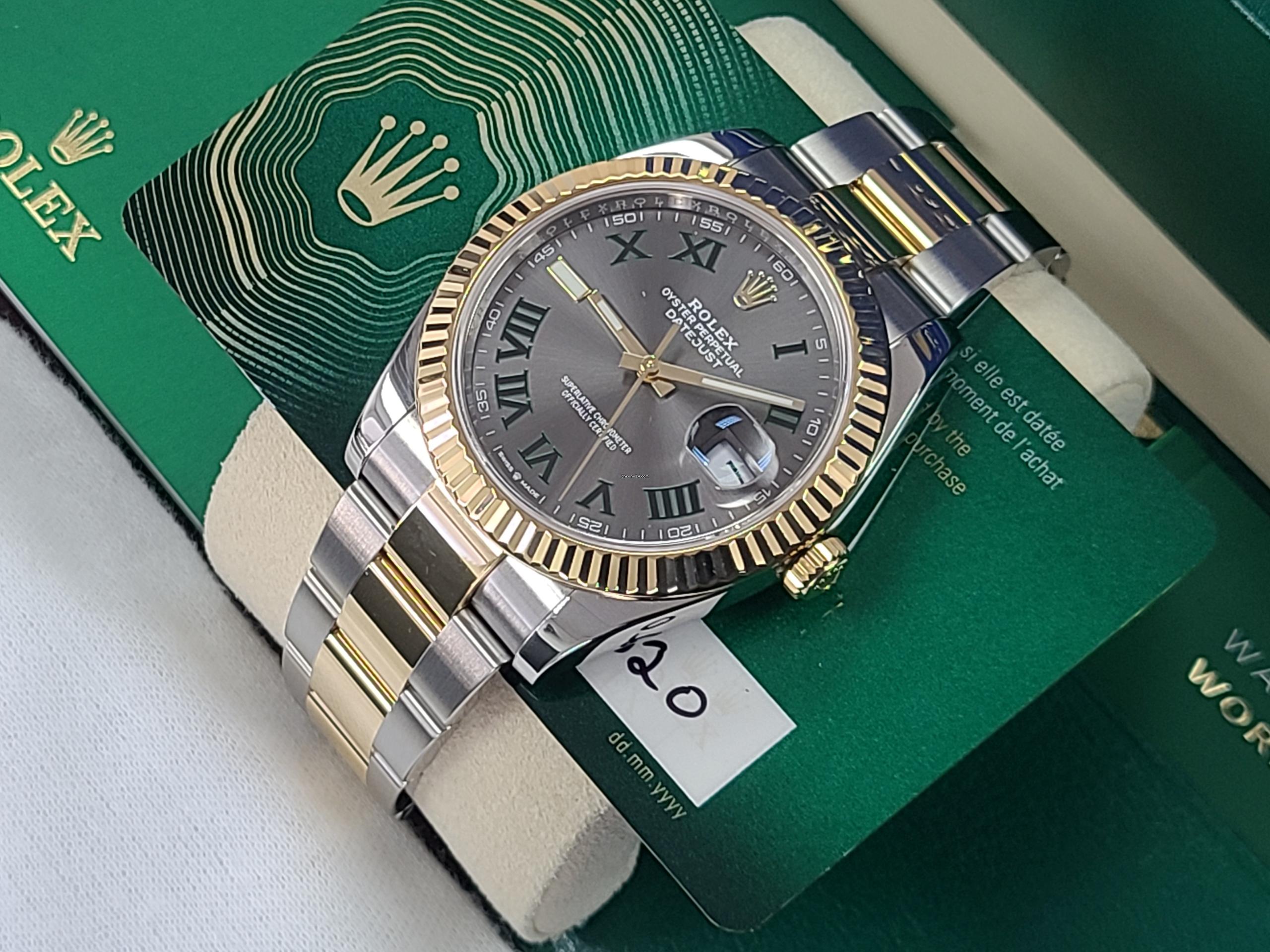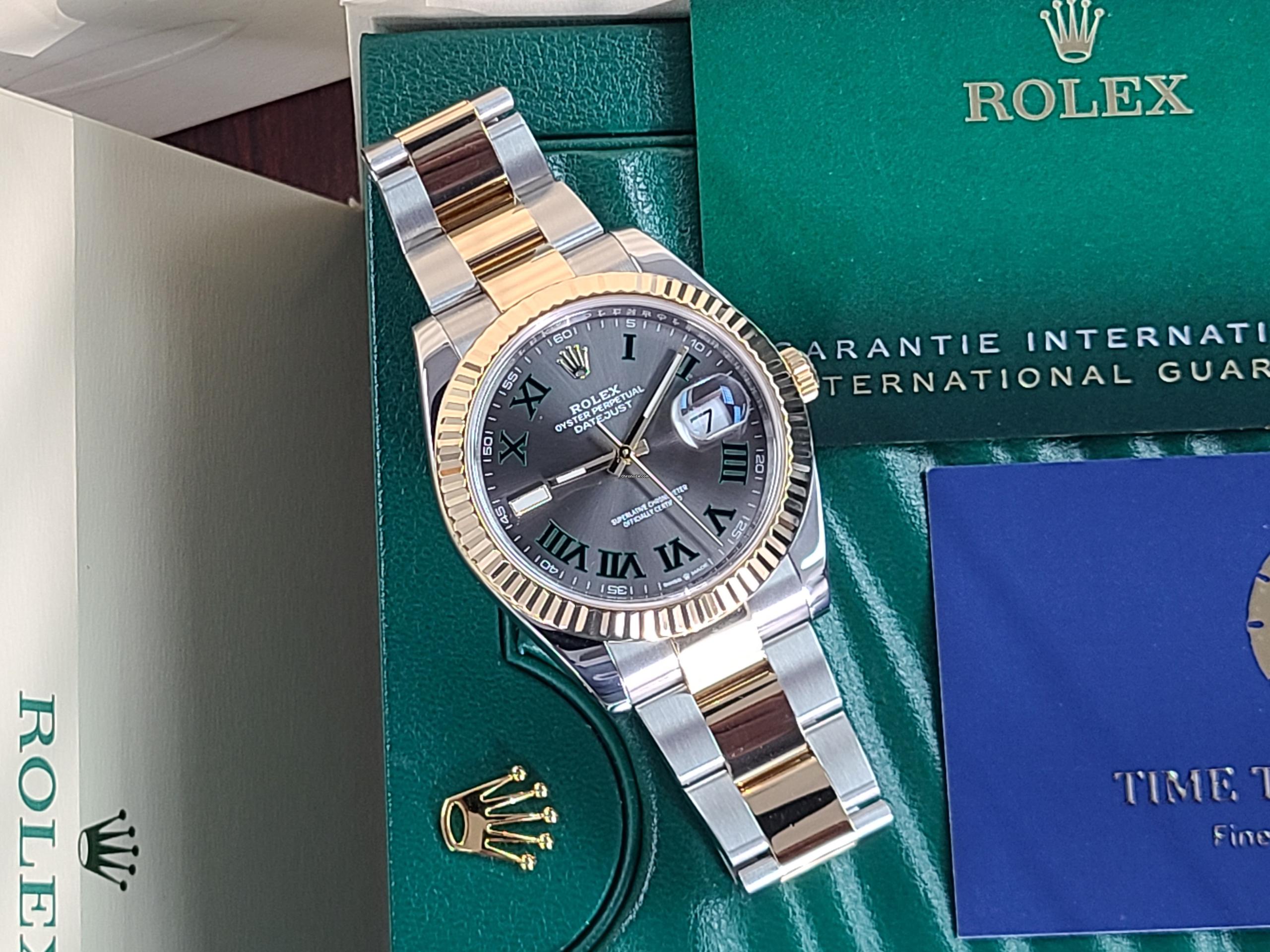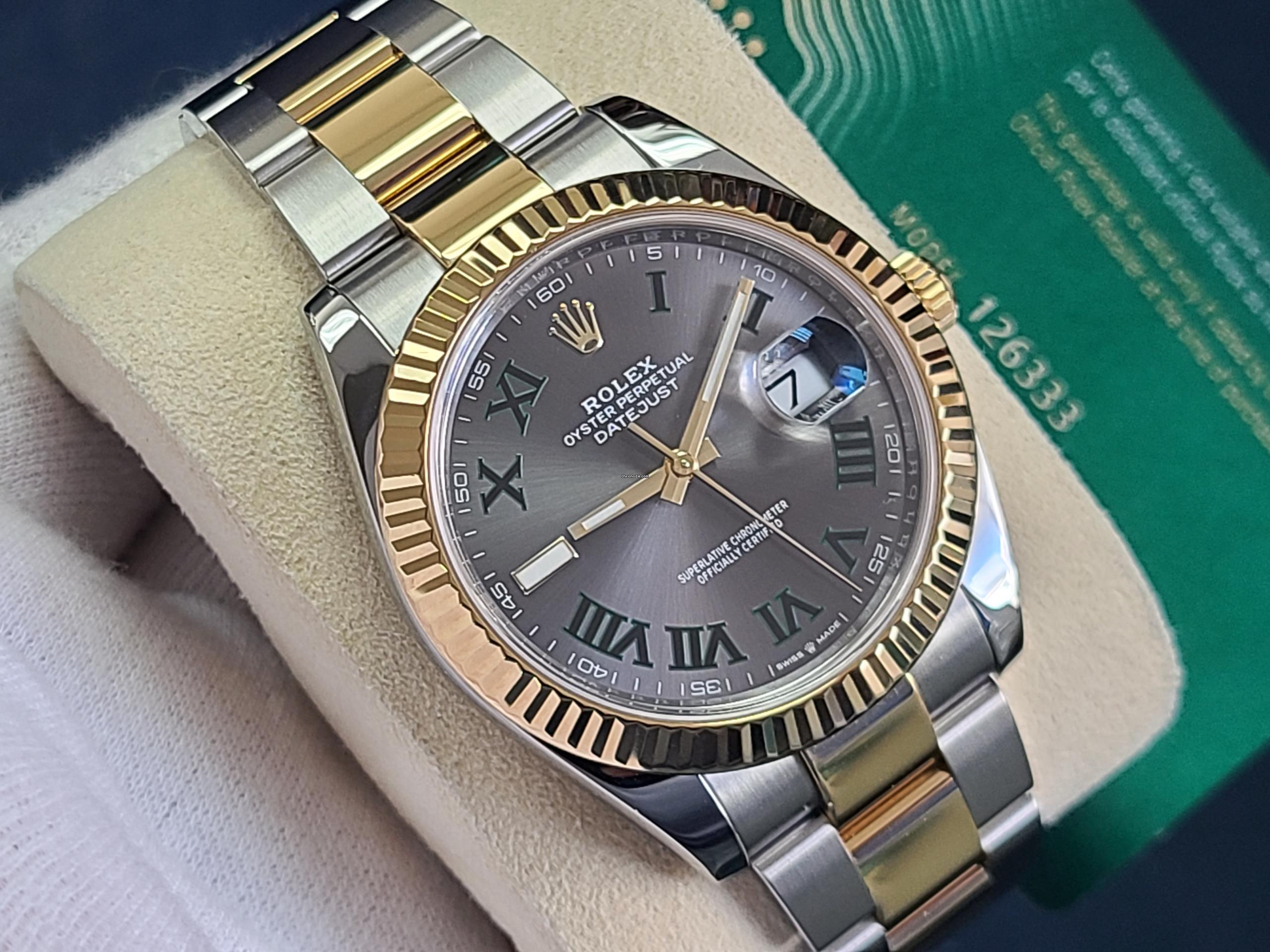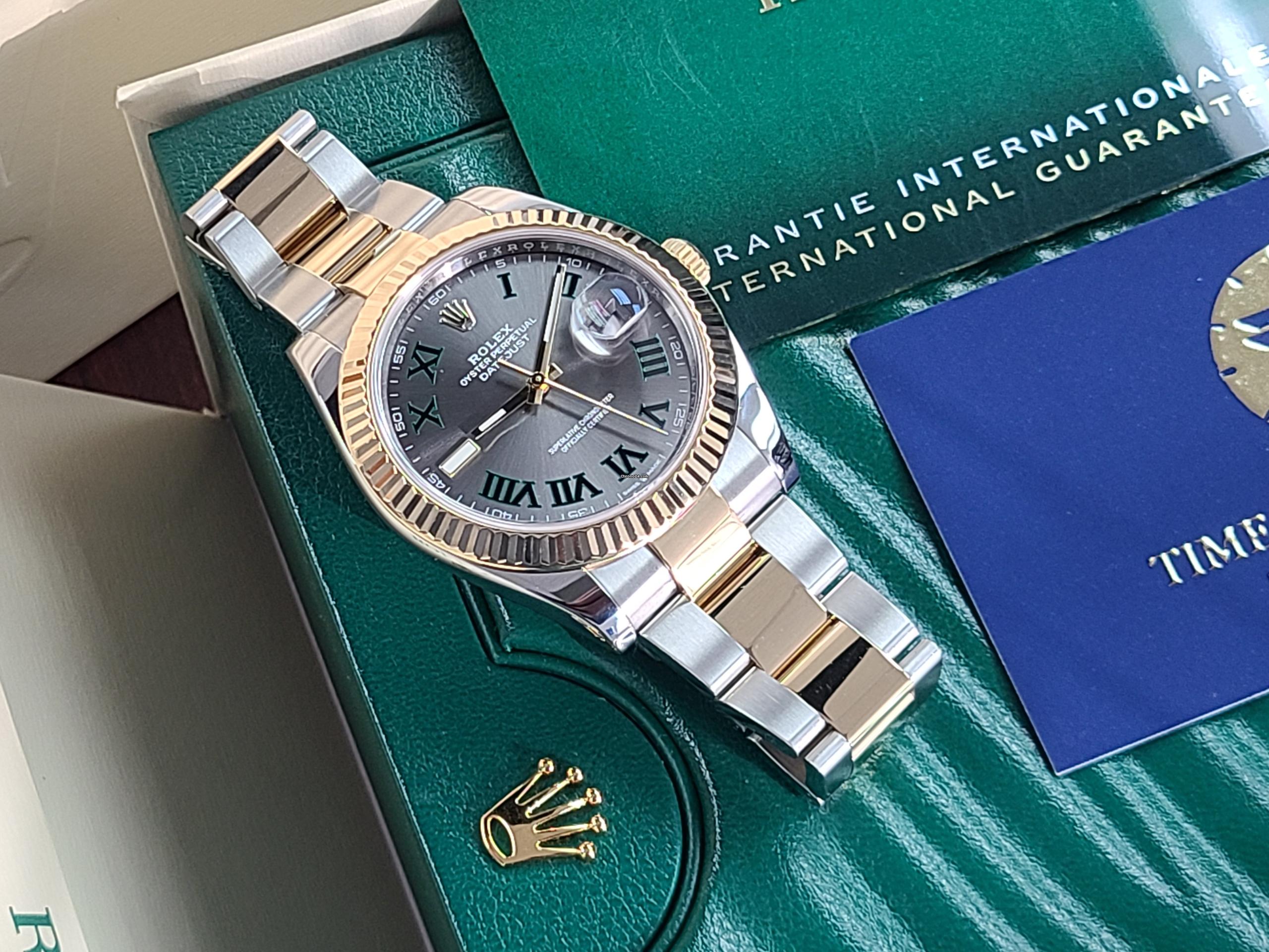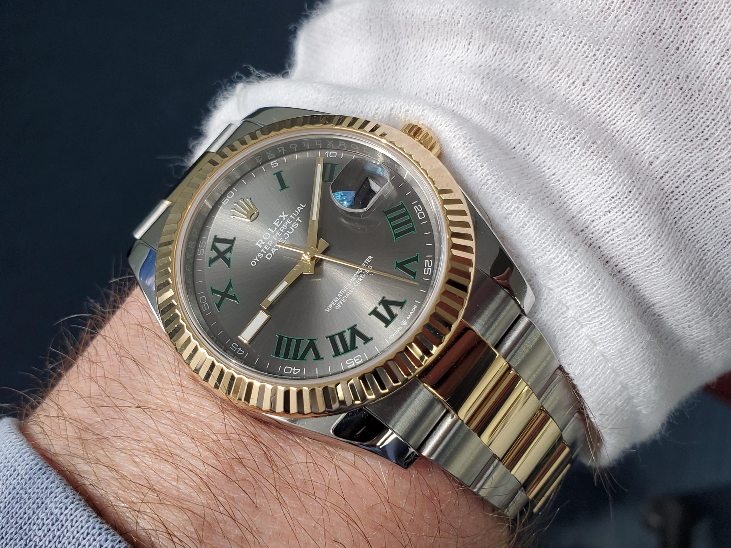 Rolex Datejust 41 WIMBLEDON Roman 18k Gold SS Two Tone Fluted Bezel 2020 with New Green Card