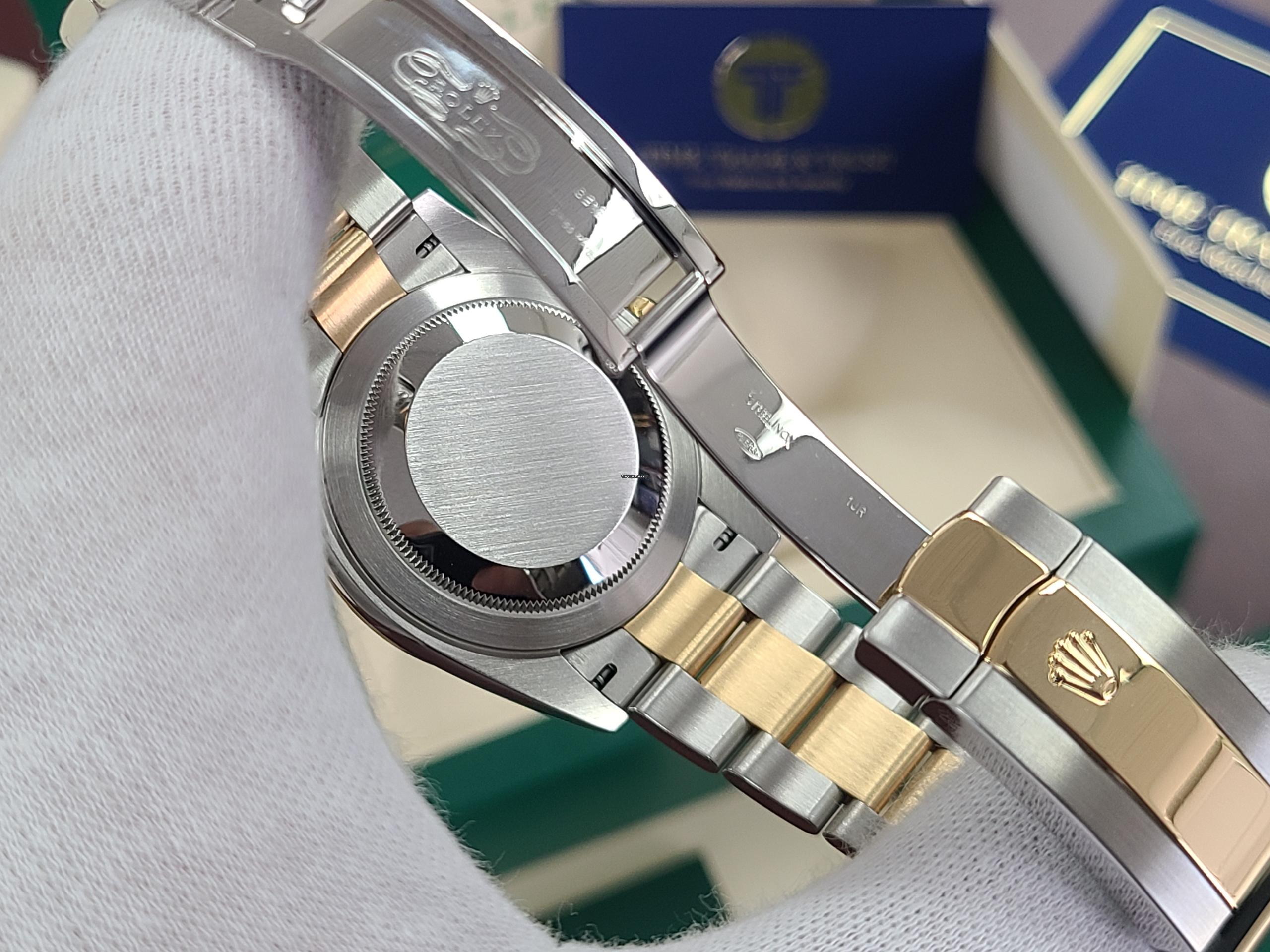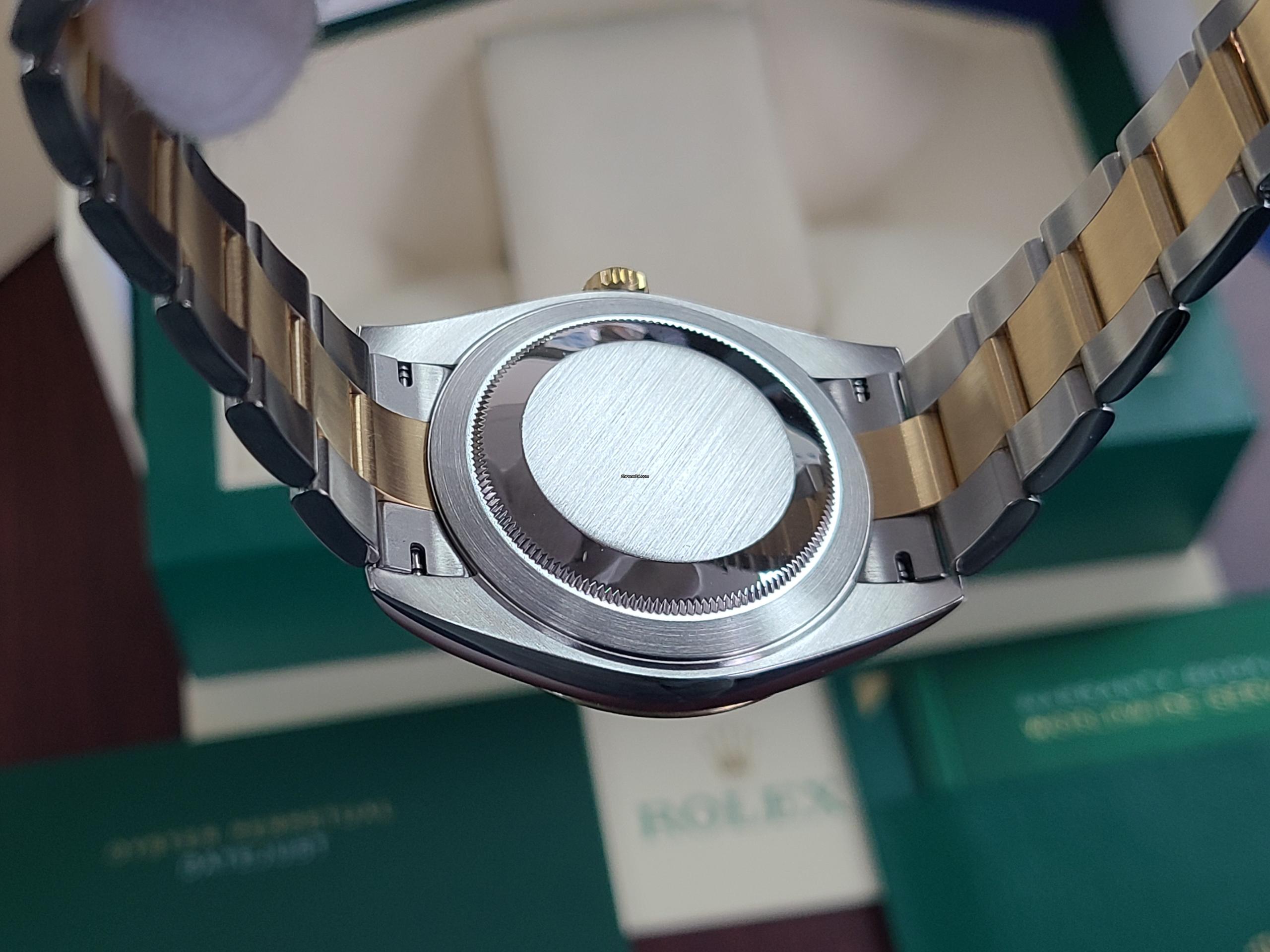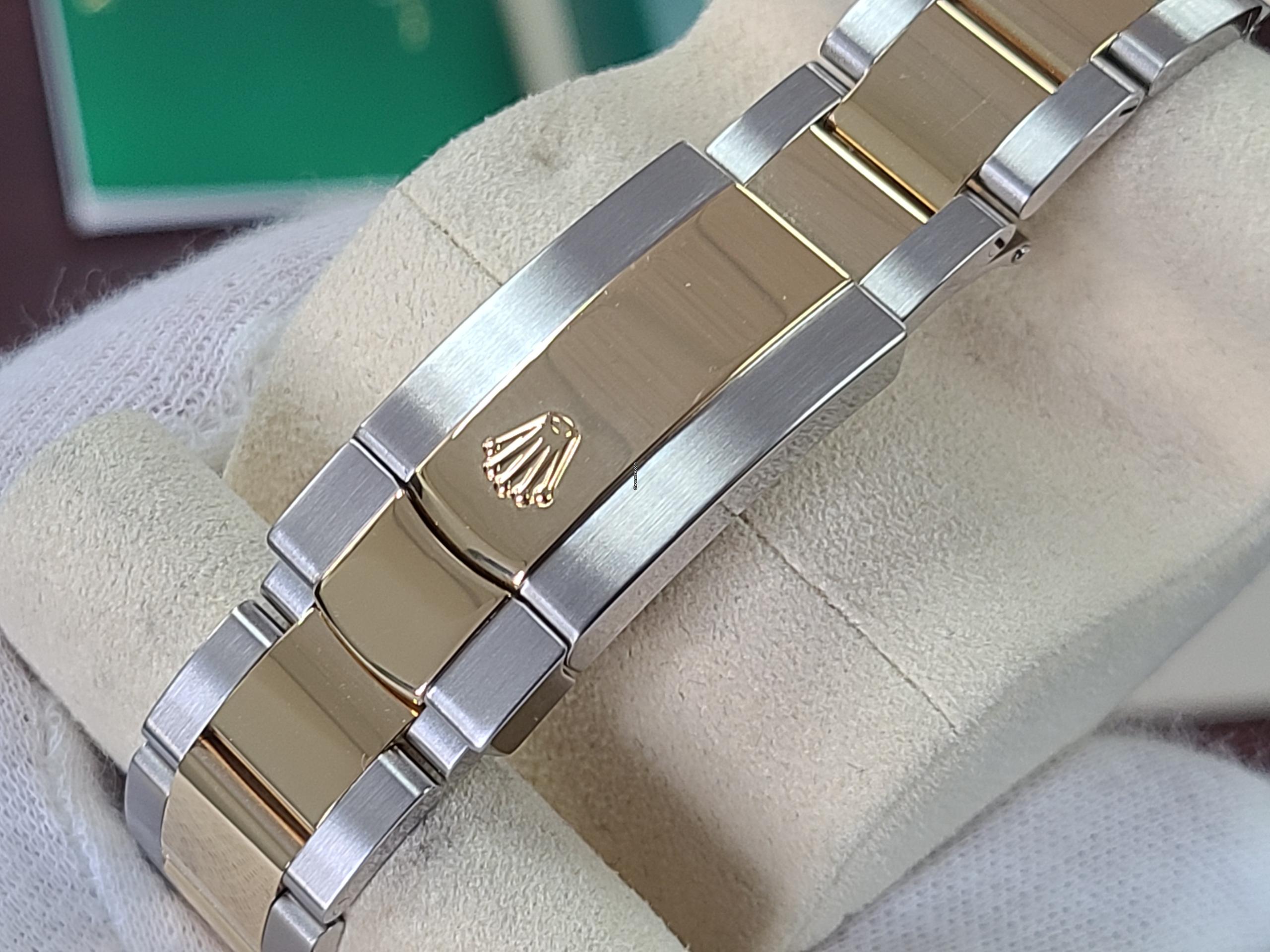 - CASE: 41mm new slim oyster case and bracelet, stainless steel and 18kt gold fluted bezel.