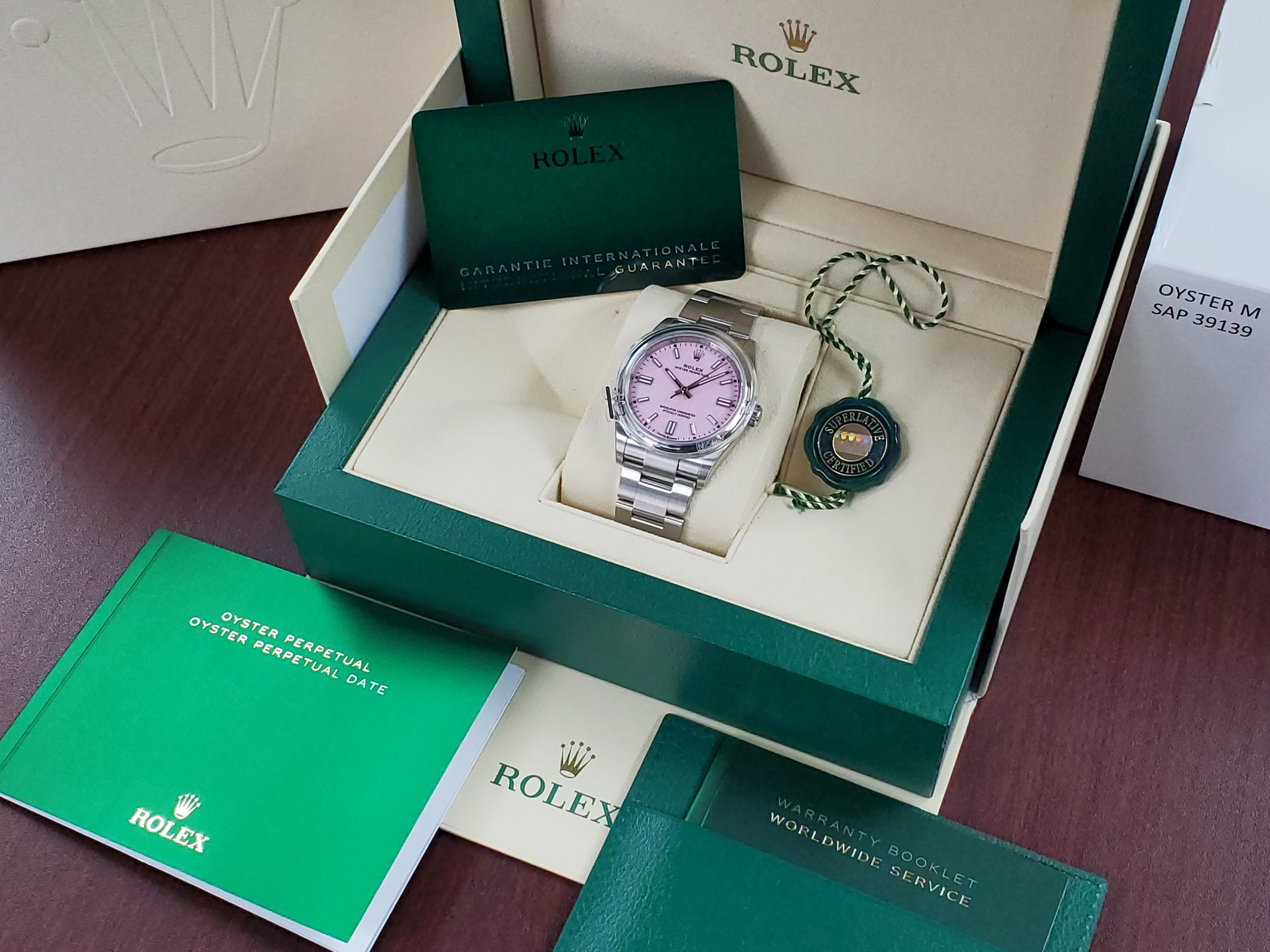 Rolex Oyster Perpetual OP 36 Novelty CANDY PINK Full Set w/ Stickers