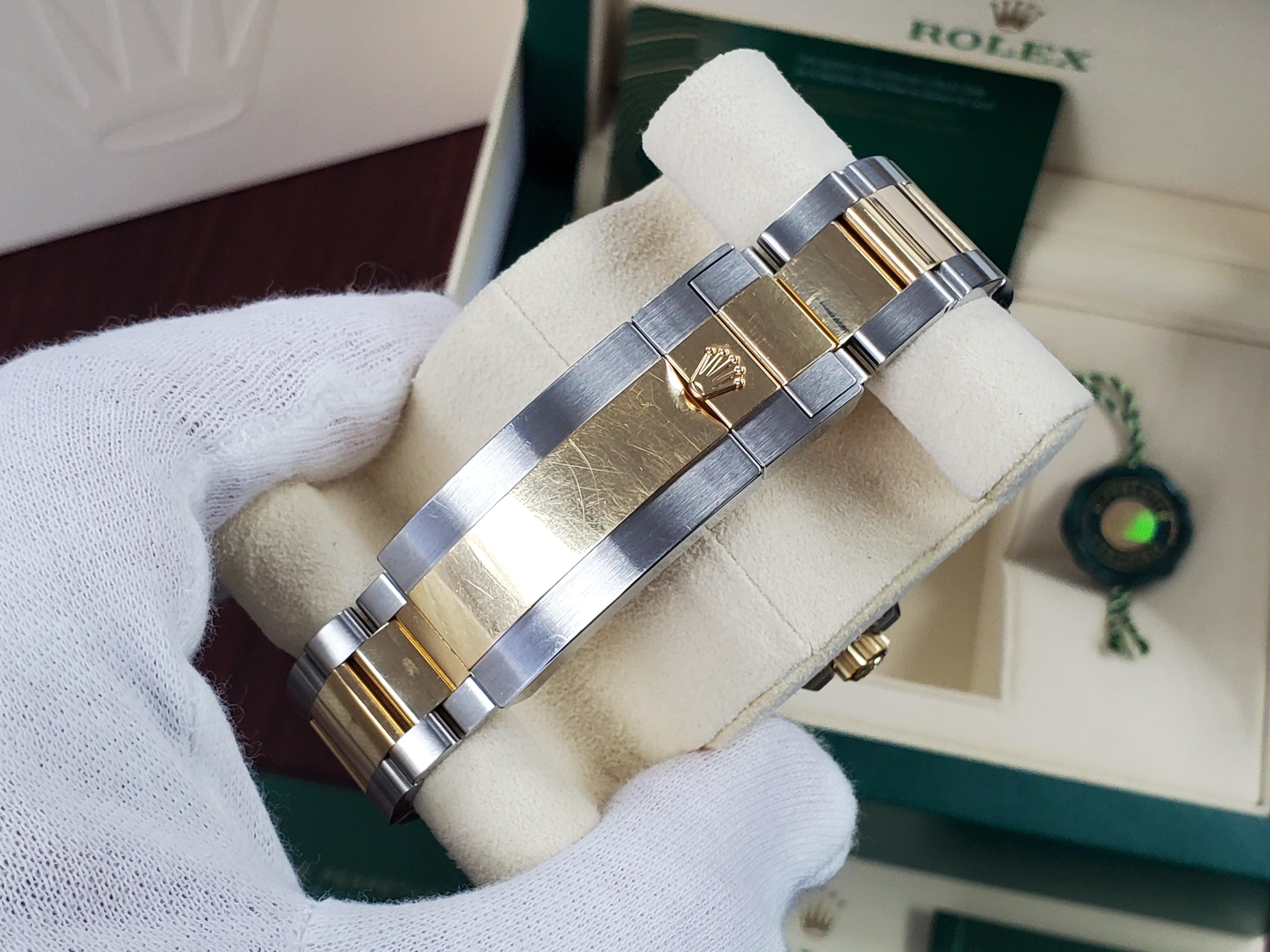 - CASE: 43mm oyster supercase on oyster bracelet. 18kt gold and steel.