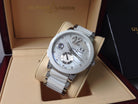 This Executive Lady watch is made exclusively for ladies. It is large 40mm case, ceramic bezel and white mother-pear dial are mixing perfectly to raise the inner beauty of females. Meanwhile, the 43 diamonds, big date indicator, and dual time system illustrate the perfection of the collaboration of fashion and high spirit of strong lady in arranging her time to reach the goal.