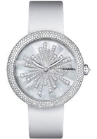 Chanel Mademoiselle Prive Automatic Watch - White Gold Diamond Case - Pearl Marquetry And Sun Motif Diamond Dial - White Satin Strap - H4530