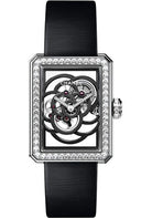 Chanel Premiere Camelia Skeleton Manual-Wind Watch - White Gold Diamond Case - Diamond Bezel - See Through Dial - Black Satin Strap - H5251