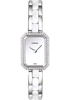 Stainless steel case, diamond bezel, white lacquer dial, quartz movement, stainless steel and white ceramic bracelet.