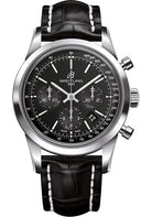 Breitling Transocean Chronograph Watch - Steel - Black Dial - Black Croco Strap - Folding Buckle - AB015212/BA99/744P/A20D.1