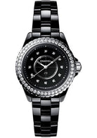 Chanel J12 Quartz Watch - 33mm Black Ceramic And Steel Case - Diamond Bezel - Black Diamond Dial - Black Ceramic Bracelet - H6419